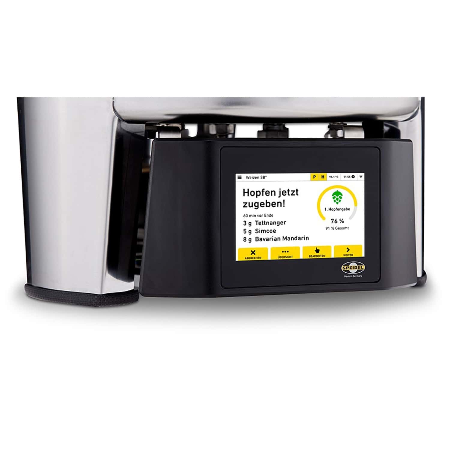 Der 20 Liter Braumeister von Speidel ist eine automatische Bierbrauanlage. Seine Brausteuerung fährt alle Programmphasen vollautomatisch ab und führt dich Schritt für Schritt durch den Brauprozess. Maischen, Läutern, Hopfenkochen und Würzekühlen laufen alle im selben Gerät ab, ganz ohne Umfüllen. Du kannst deine Wunschrezepte vorher einprogrammieren. Sobald du dann das Autoprogramm startest, werden Zeiten und Temperaturen exakt durchlaufen. Über das Touch-Display bist du immer über den Braufortschritt im Bilde. Durch das integrierte WLAN stellst du die Verbindung mit der MySpeidel-Plattform auf deinem Smartphone oder ähnlichem Gerät her.