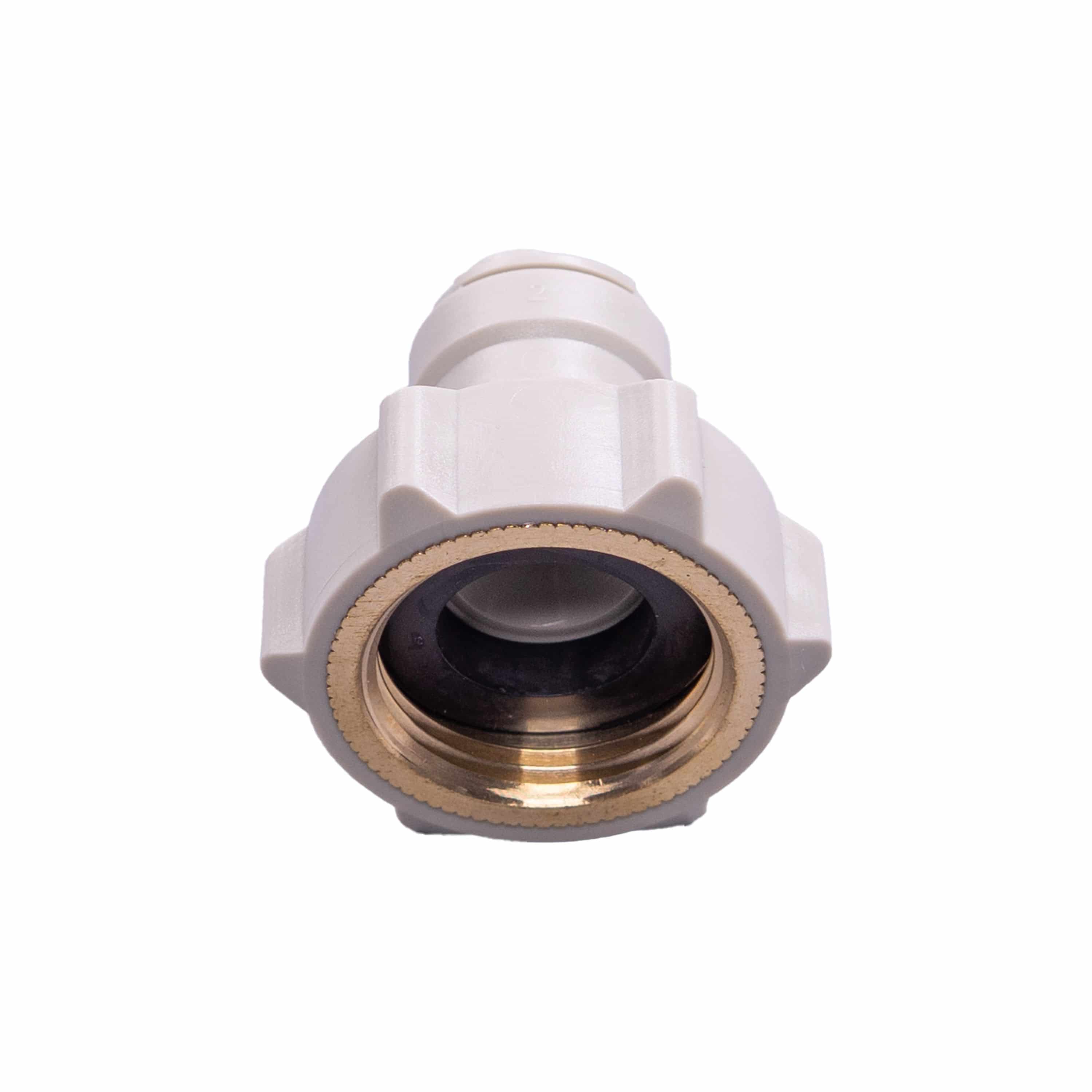 DMfit® Schlauchverbinder zum schnellen und einfachen Verbinden von einem Schlauch mit 3/8" Außendurchmesser (ca. 9,5 mm AD) und einem 3/4" BSP Anschluss.