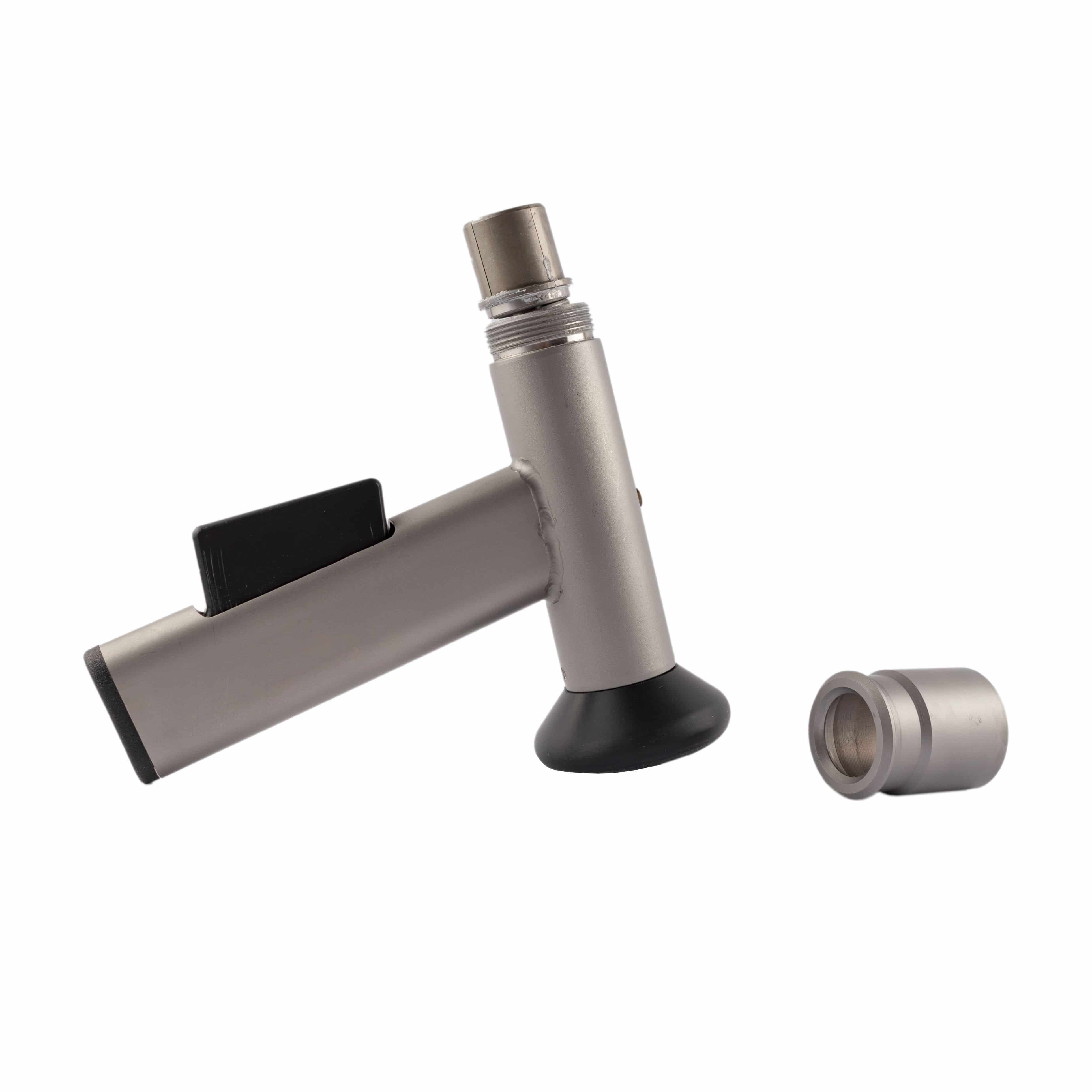 - Die Pistole auf die Fitting-Hauptdichtung setzen und nach unten bis zum Anschlag drücken, ohne dabei den Abzug der Pistole zu drücken. Die Pistole ist dann mit dem Steigrohr verbunden.