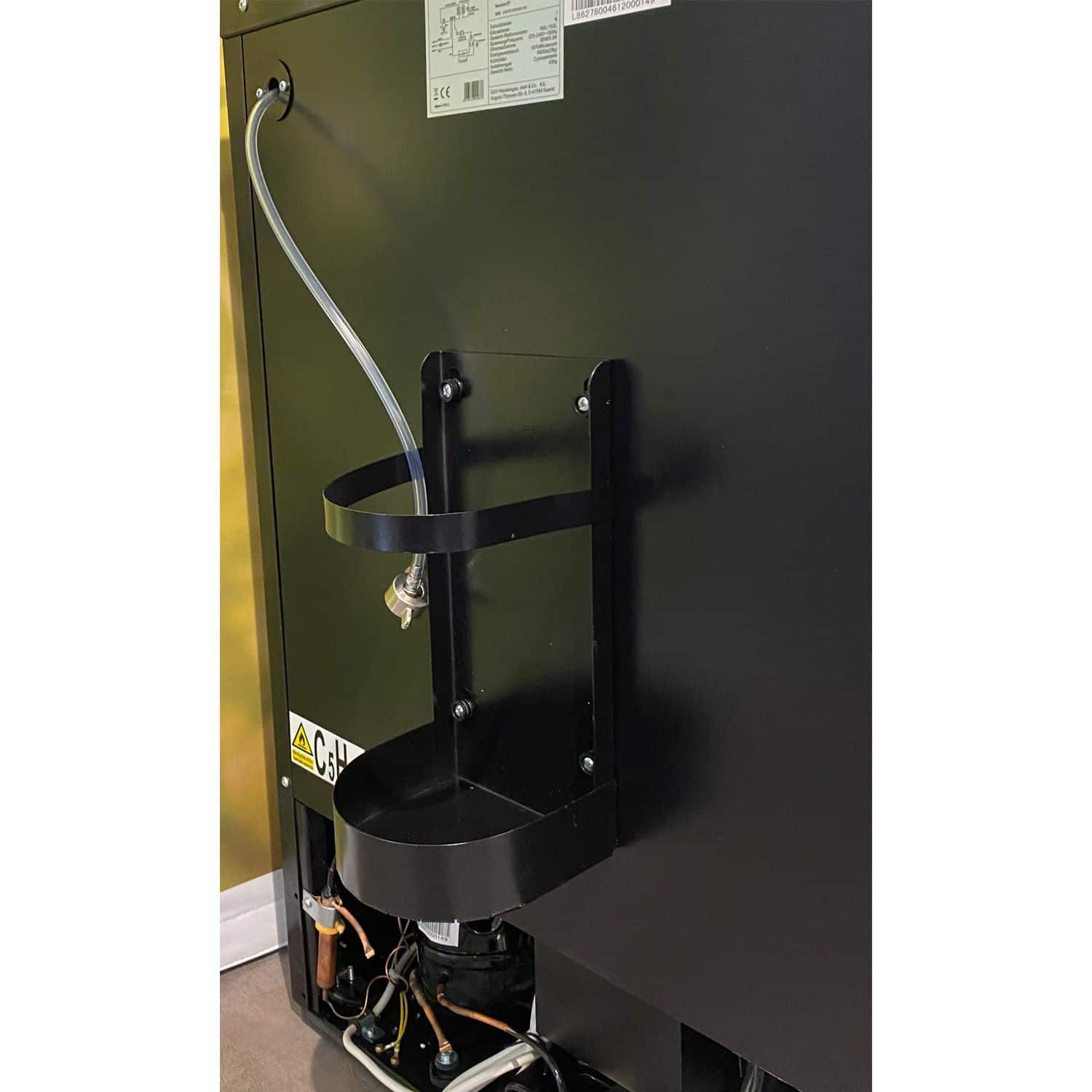 Der Bierfass-Kühlschrank KOMPLETT wird mit passenden Verbindungsschläuchen und Anschlussteilen für die Gaszufuhr und den Getränkeabgang geliefert. Ein Micro Matic Flachzapfkopf zum Arretieren auf dem Fitting des Bierkegs ist ebenfalls im Set dabei. Für den sicheren Stand der Gasflasche kann an der Rückseite des Fasskühlschranks die CO2-Flaschenhalterung angebracht werden.