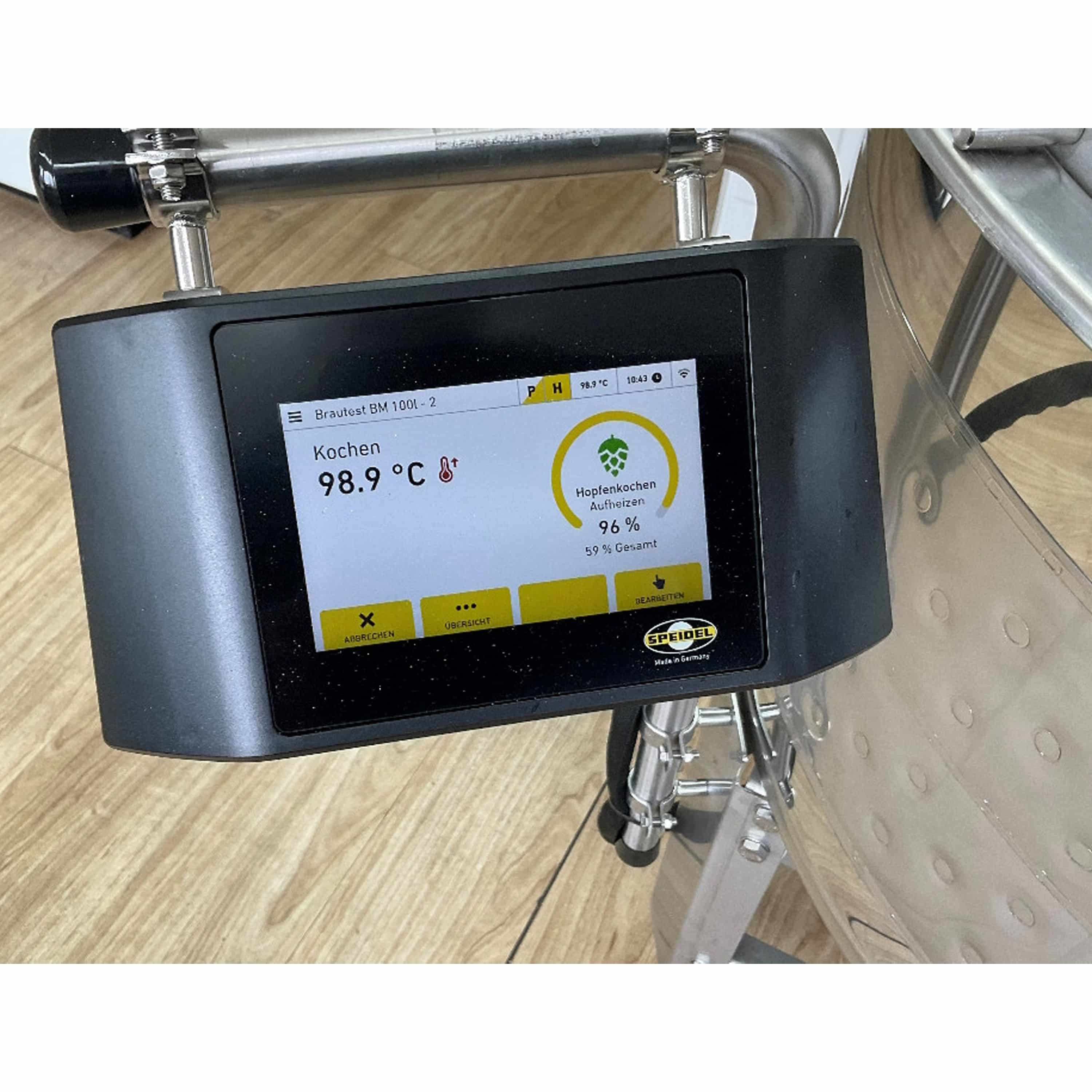 Der 100 Liter Braumeister von Speidel ist eine automatische Bierbrauanlage. Seine Brausteuerung fährt alle Programmphasen vollautomatisch ab und führt dich Schritt für Schritt durch den Brauprozess. Maischen, Läutern, Hopfenkochen und Würzekühlen laufen alle im selben Gerät ab, ganz ohne Umfüllen. Du kannst deine Wunschrezepte vorher einprogrammieren. Sobald du dann das Autoprogramm startest, werden Zeiten und Temperaturen exakt durchlaufen. Über das Touch-Display bist du immer über den Braufortschritt im Bilde. Durch das integrierte WLAN stellst du die Verbindung mit der MySpeidel-Plattform auf deinem Smartphone oder ähnlichem Gerät her.