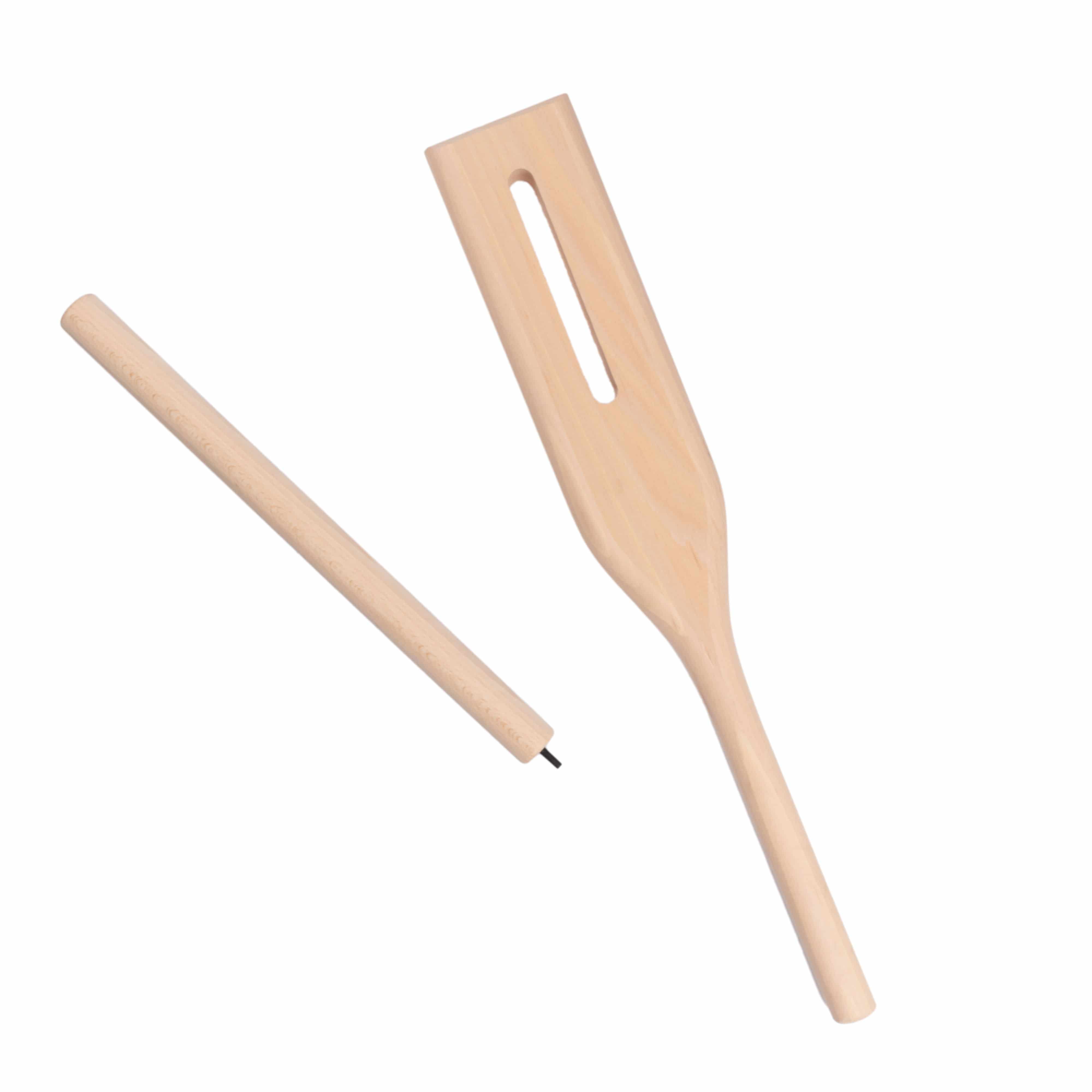Langes, zerlegbares Braupaddel für große Brausude. Das Maischepaddel besteht aus zwei Teilen, die durch die integrierte Schraubverbindung jederzeit einfach und schnell montiert sowie demontiert werden können. Die extra große, robuste Rührfläche hat eine längliche Ausfräsung. Mit dem griffigen, runden Stiel liegt das Braupaddel stets gut in der Hand.