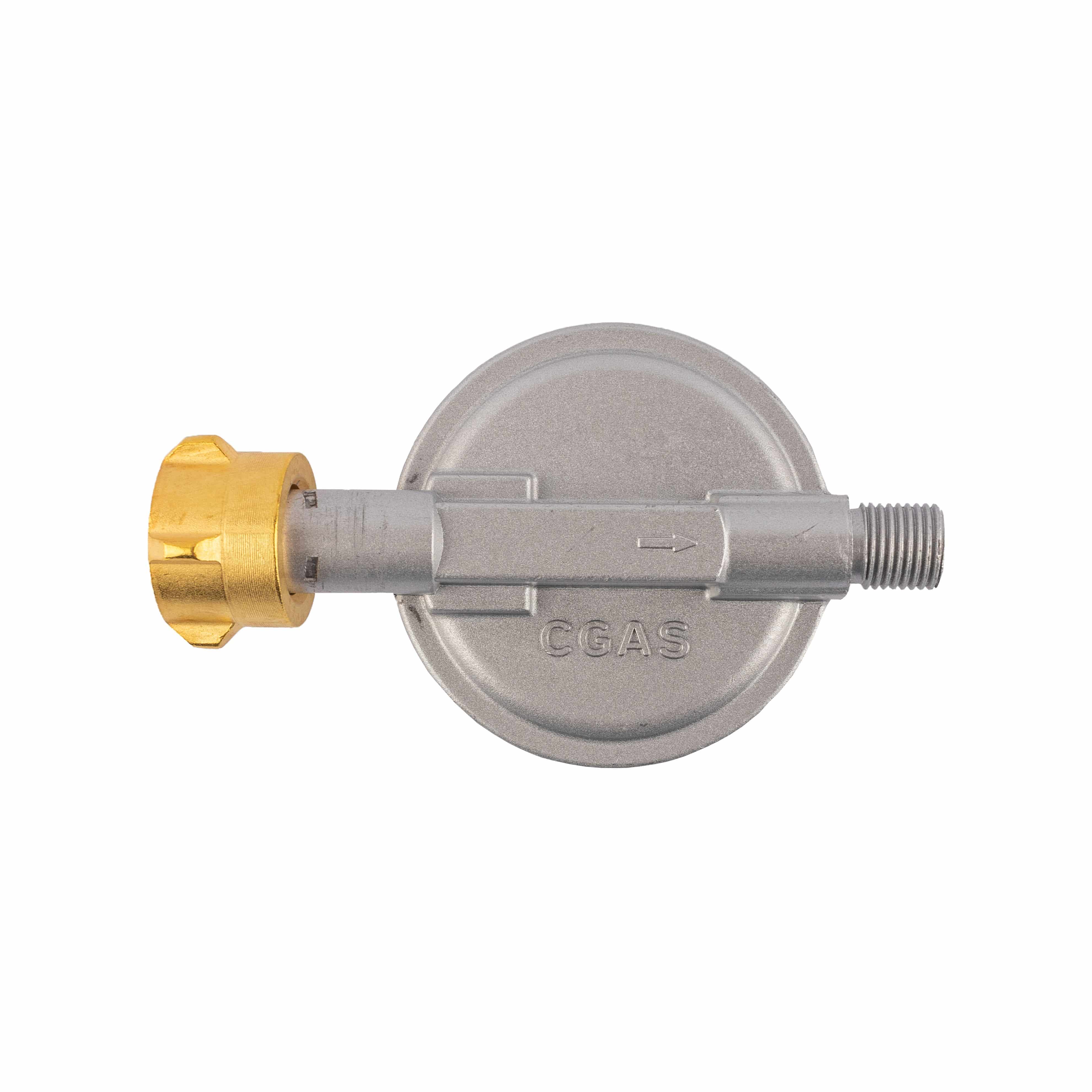 Dieser einstufige Niederdruckregler für Flüssiggas (Propangas) hat einen fest eingestellten Ausgangsdruck von 50 mbar. Einerseits wird er an eine Druckgasflasche angeschlossen, andererseits hat er ein 1/4" Außengewinde für die Montage eines Propangasschlauches.