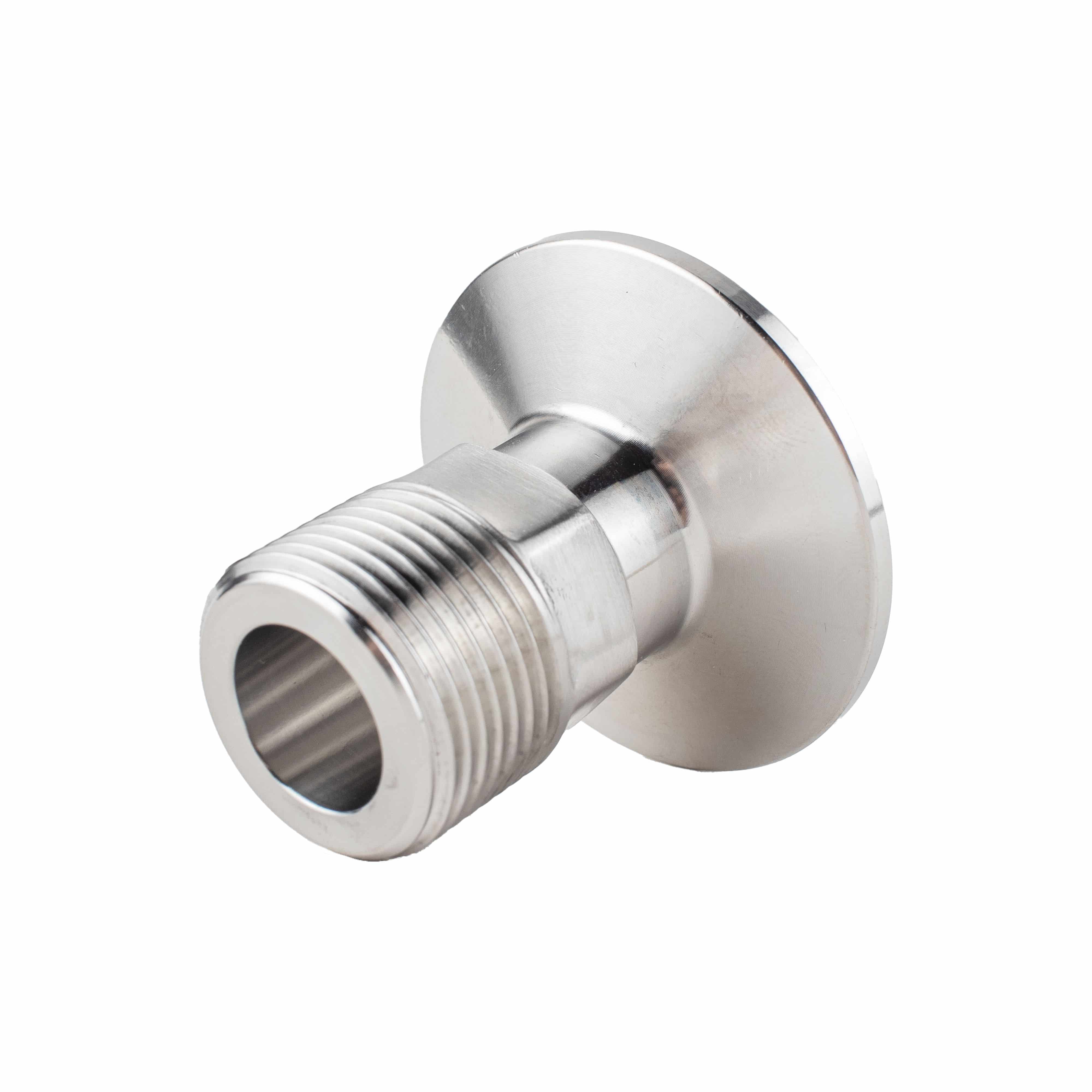 Dieser Tri-Clamp Gewindeadapter aus Edelstahl hat einerseits den 1,5" Tri-Clamp Flansch und andererseits ein 3/4 Zoll Außengewinde.