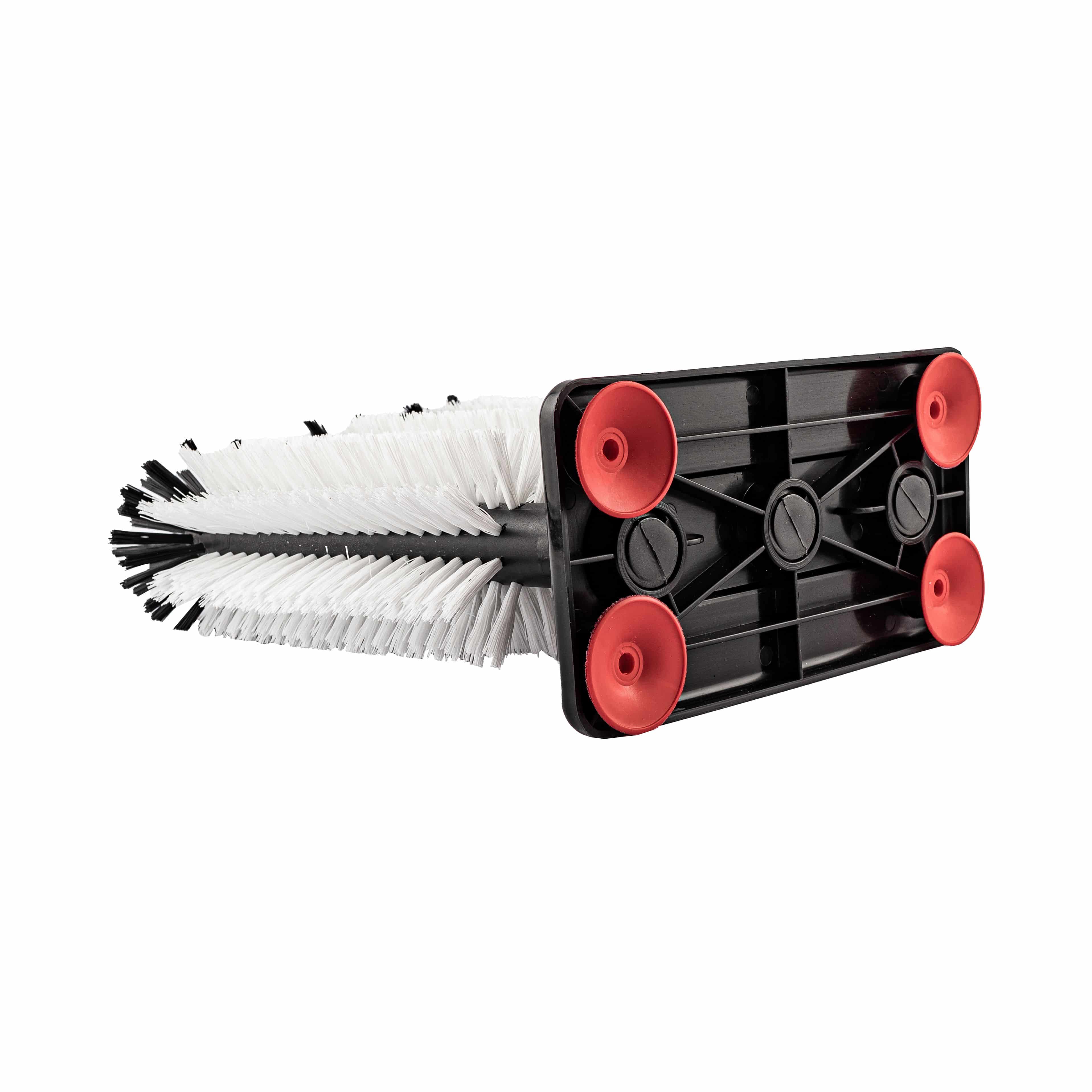 Die einzelnen Bürsten sind mittels Gewinde in die Standfläche eingedreht und können bei Bedarf ausgetauscht werden. An der Unterseite der Standfläche befinden sich vier Saugnäpfe für den festen Stand der Gläserspülgarnitur.