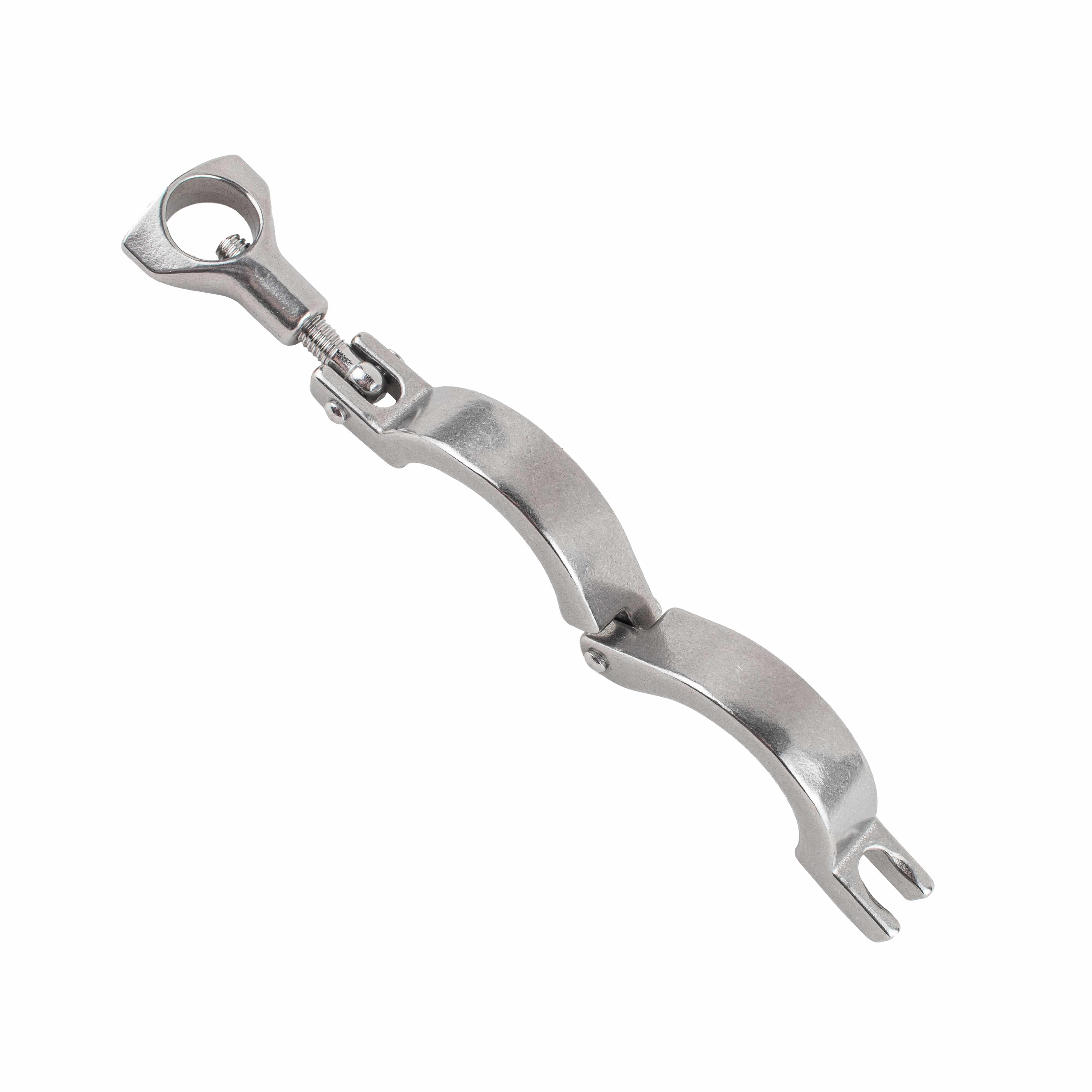 Die Tri-Clamp Klammer ist sozusagen das Herzstück des Tri-Clamp Rohrverbindungssystems. Die robuste Edelstahl-Klemme hält die Klemmverbindungen des 1,5"-Systems zusammen. Befestigt wird die Klemme mithilfe ihrer Feststellschraube.