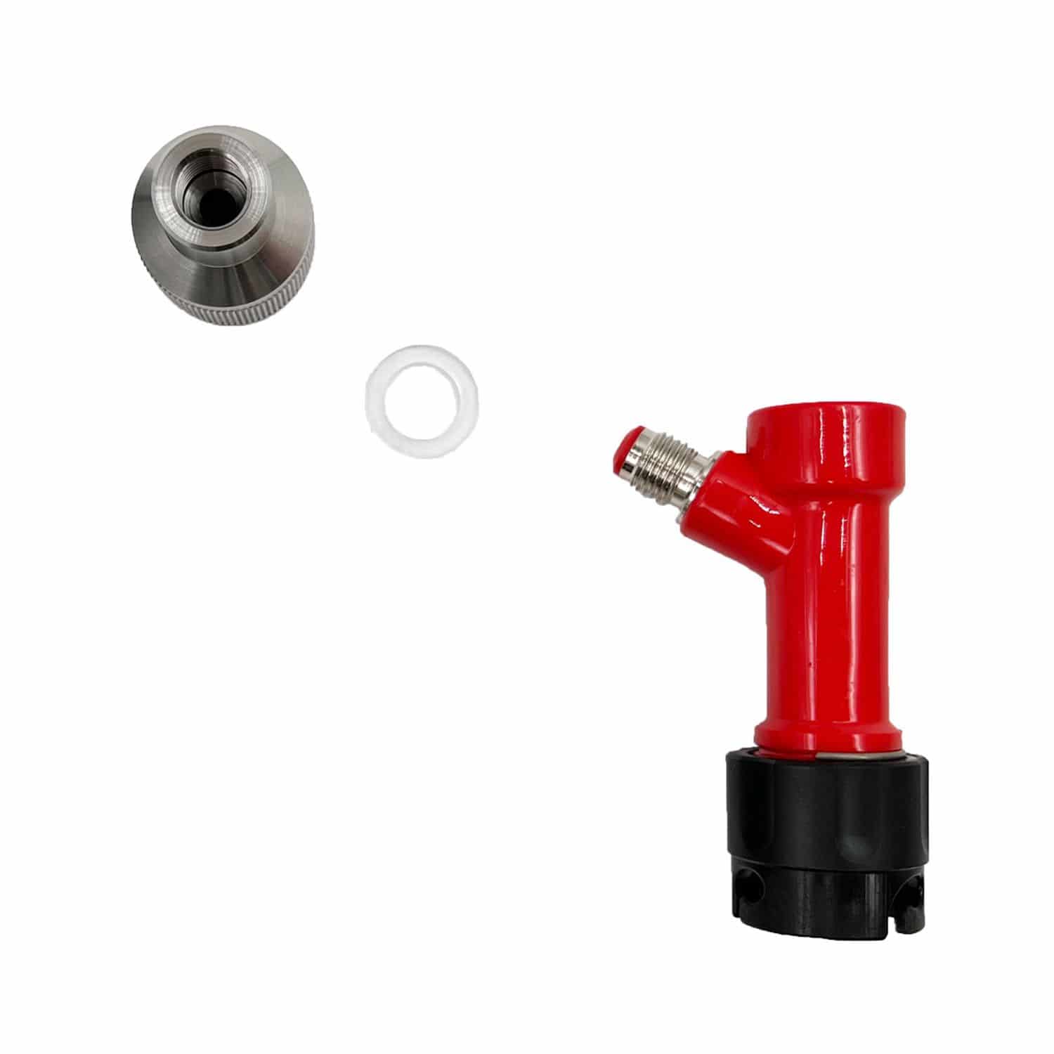 Das Set besteht aus einer Getränkekupplung für CC-Keg, einem Edelstahl-Adapterstück und einer Dichtung.
