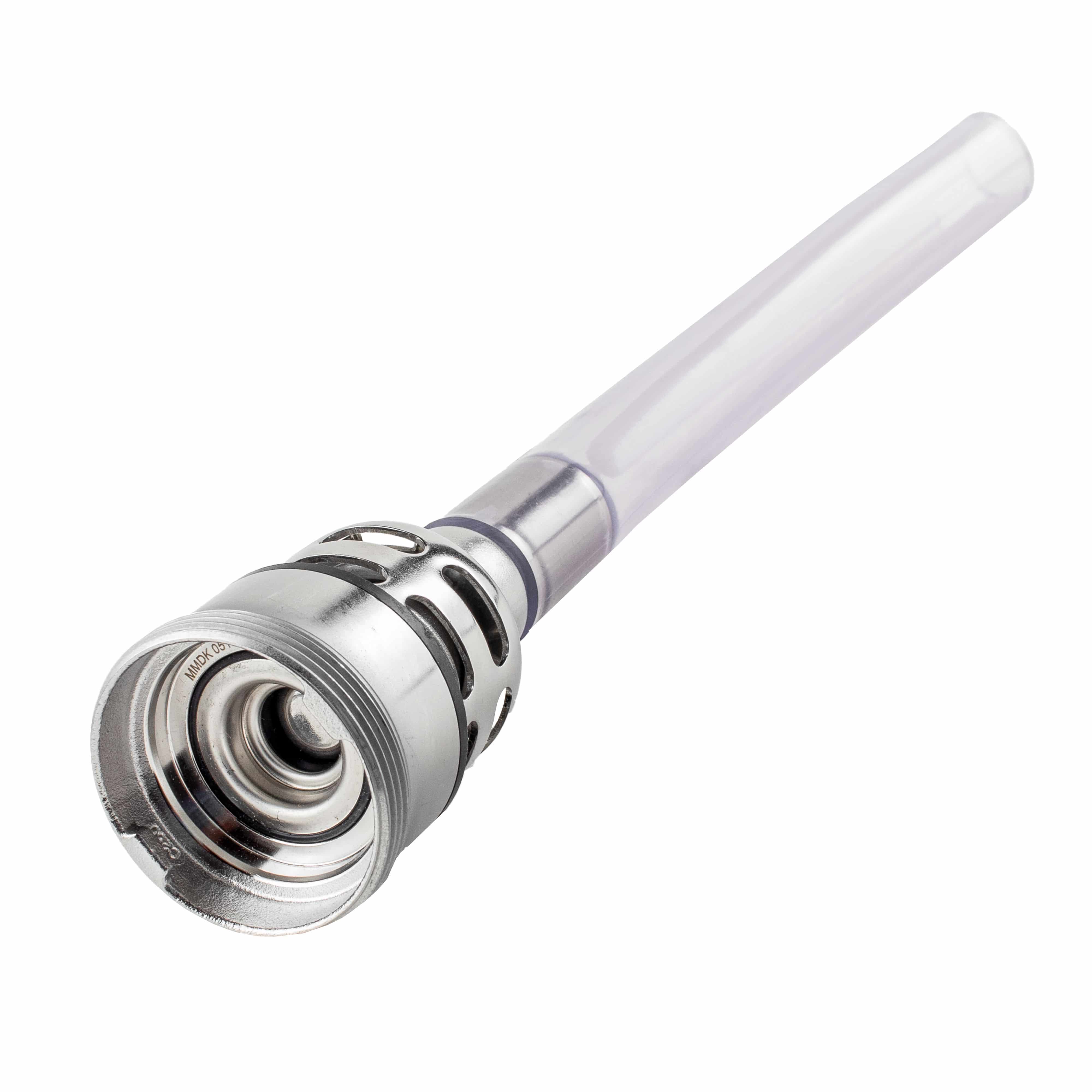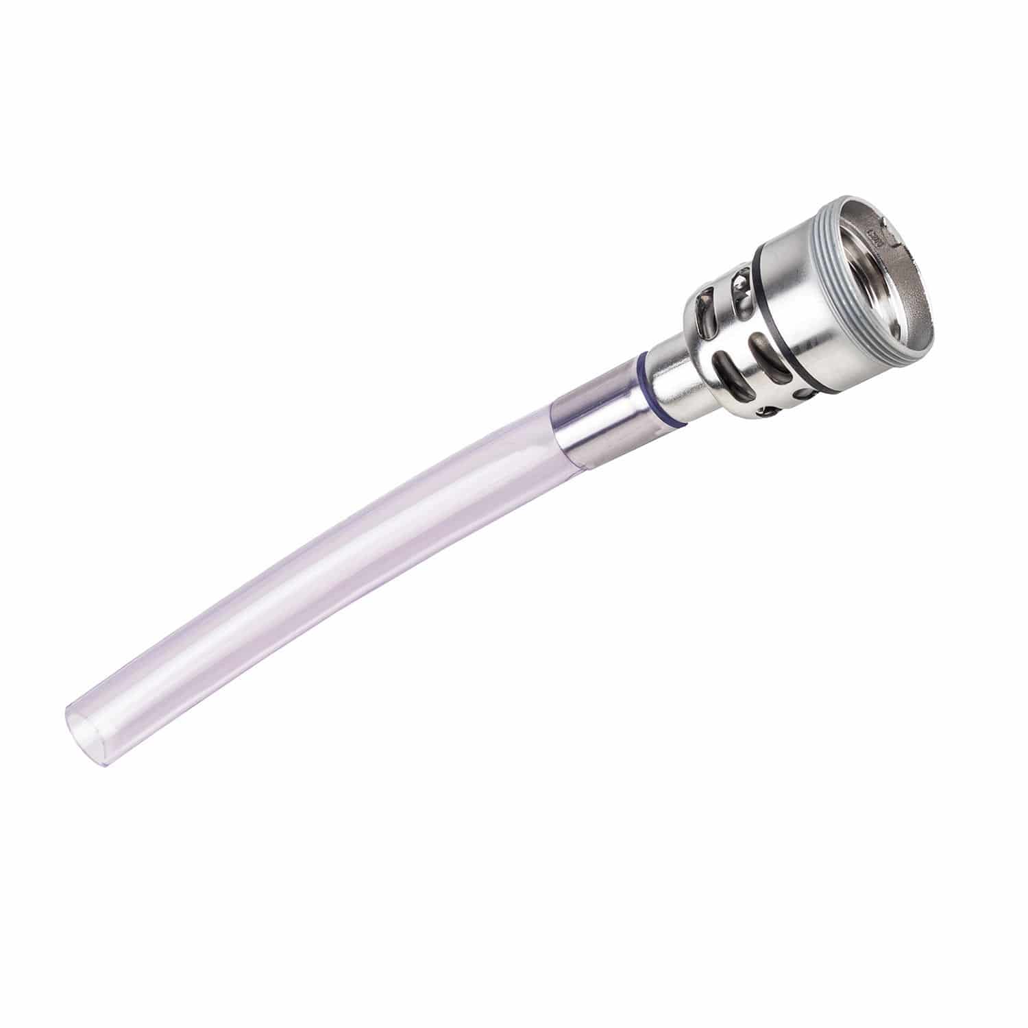 Du bestellst hier einen sogenannten Reinigungsfitting. An den Fittingkopf ist statt eines langen Steigrohres ein Schlauchstück befestigt. Die Schlauchstück-Länge des Reinigungsfittings ist immer auf die Größe des Reinigungsbehälters abgestimmt.