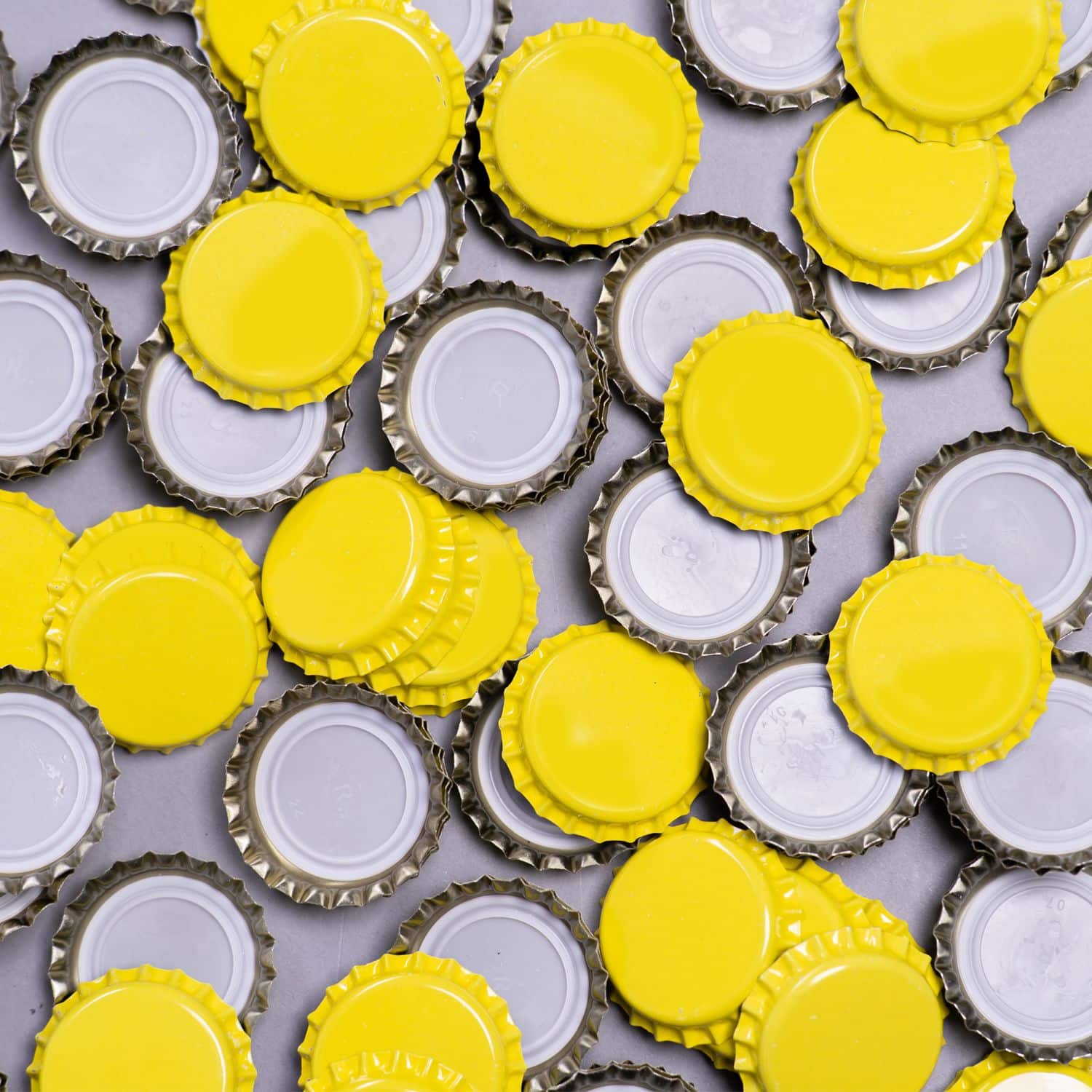 - 1x Packung mit 500 Stück Kronkorken 26 mm GELB