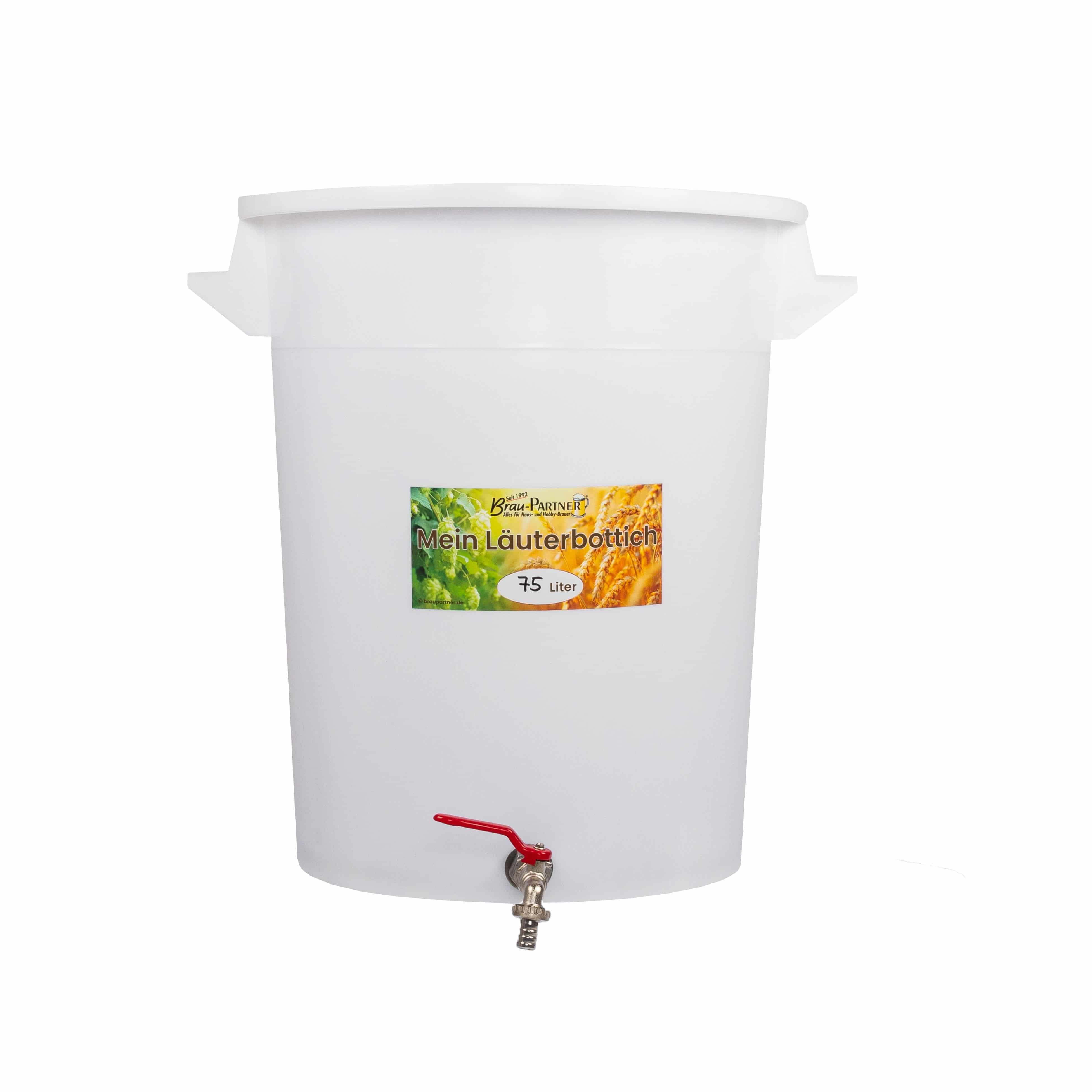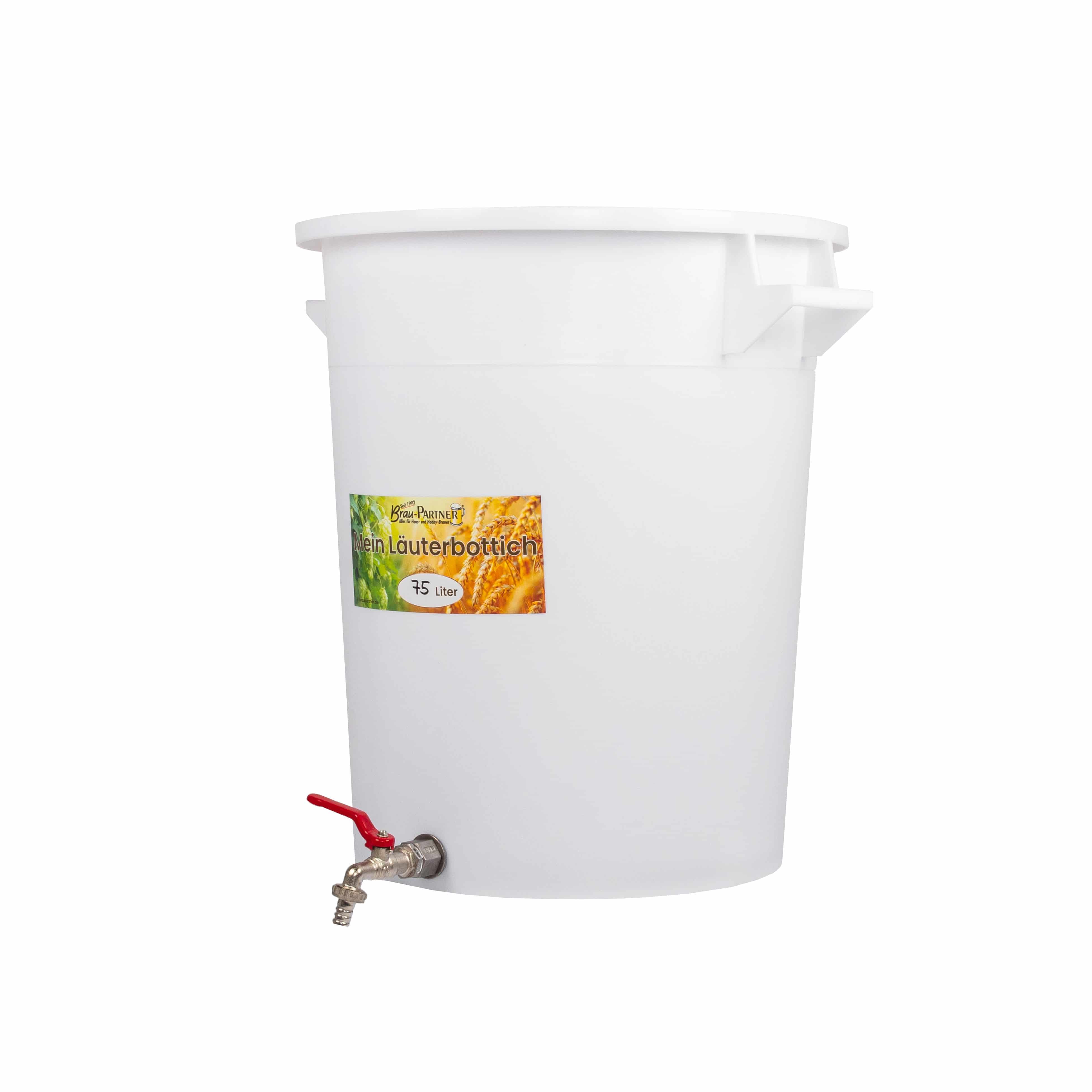 Unser bewährter Läuter-und Filterbottich, Vol. ca. 75 Liter für bis zu ca. 100-150 Liter Sude (also für etwa bis zu 25 - 30 kg Schüttung). Ein Deckel ist im Lieferumfang nicht enthalten, bitte separat bestellen.