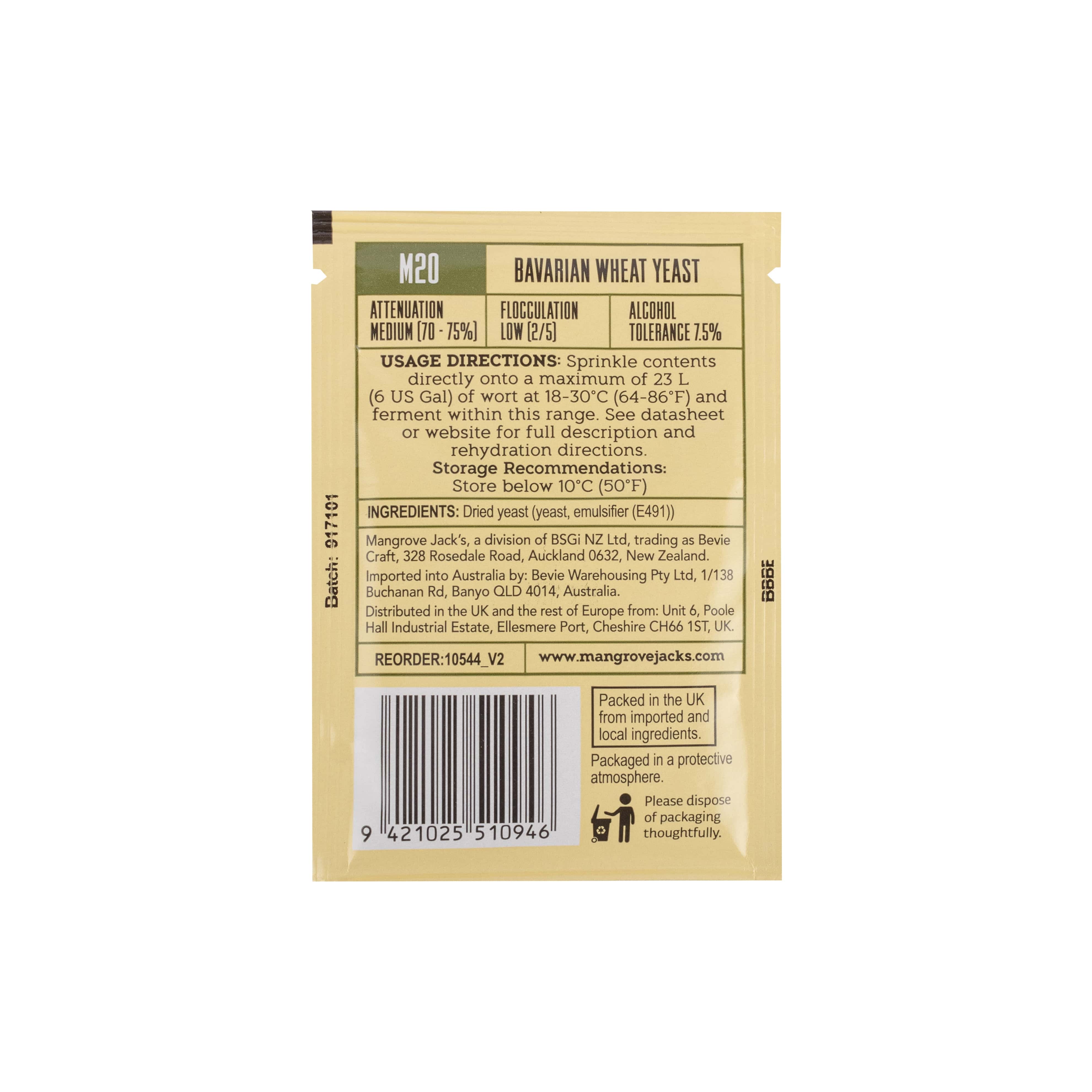 Die Mangrove Jacks M20 BAVARIAN WHEAT Trockenhefe hat und macht alles, was des Weizenbier-Brauers Herz erfreut. Vollmundige Aromen von Banane und Nelke, mit einem langanhaltenden, körperreichen Nachtrunk und einem angenehm seidenweichen Mundgefühl.