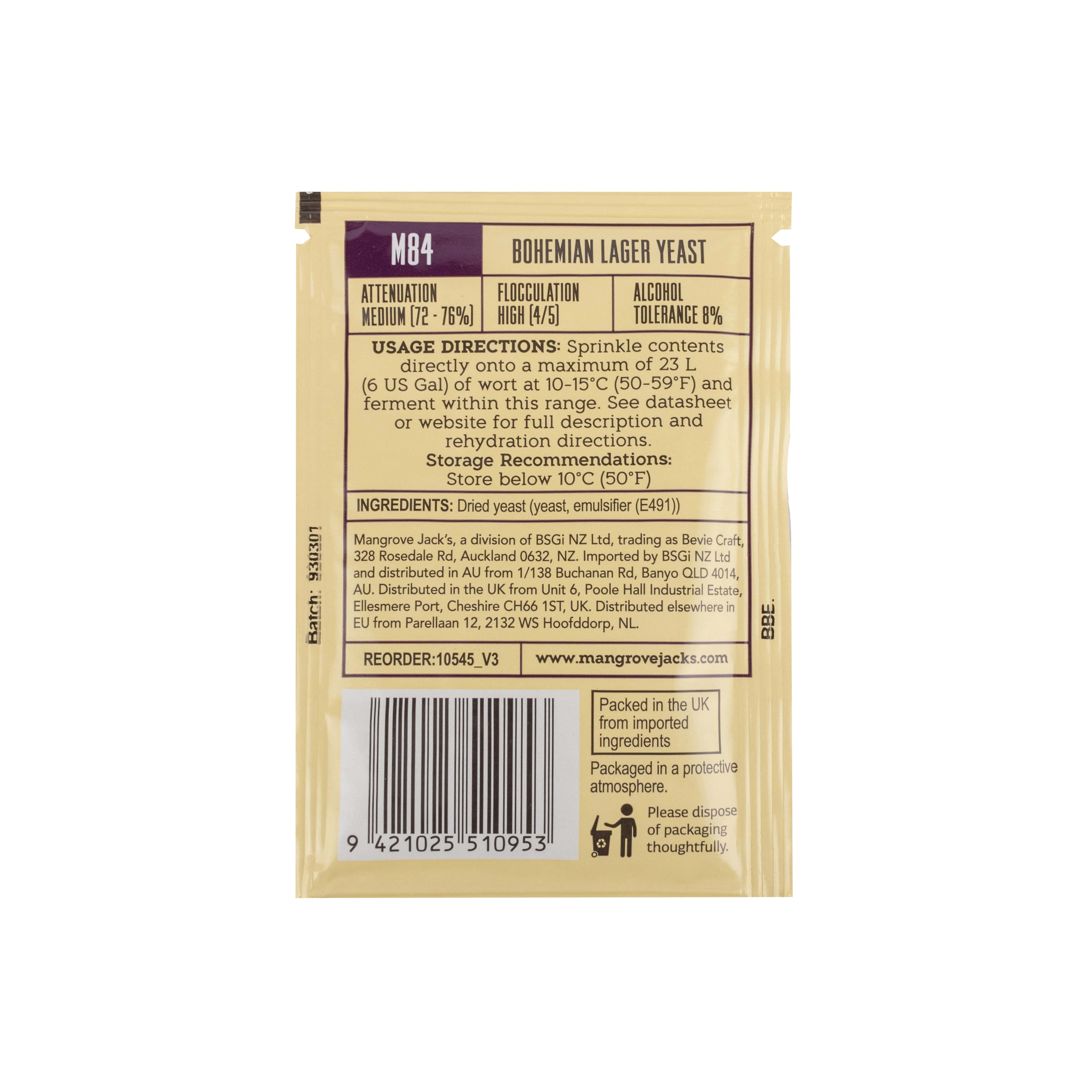 Die Mangrove Jacks M84 BOHEMIAN LAGER Trockenhefe produziert weiche, ausgewogene Biere mit einem trockenen und sauberen Abgang, wie es insbesondere für die traditionelle tschechische Brauart typisch ist.