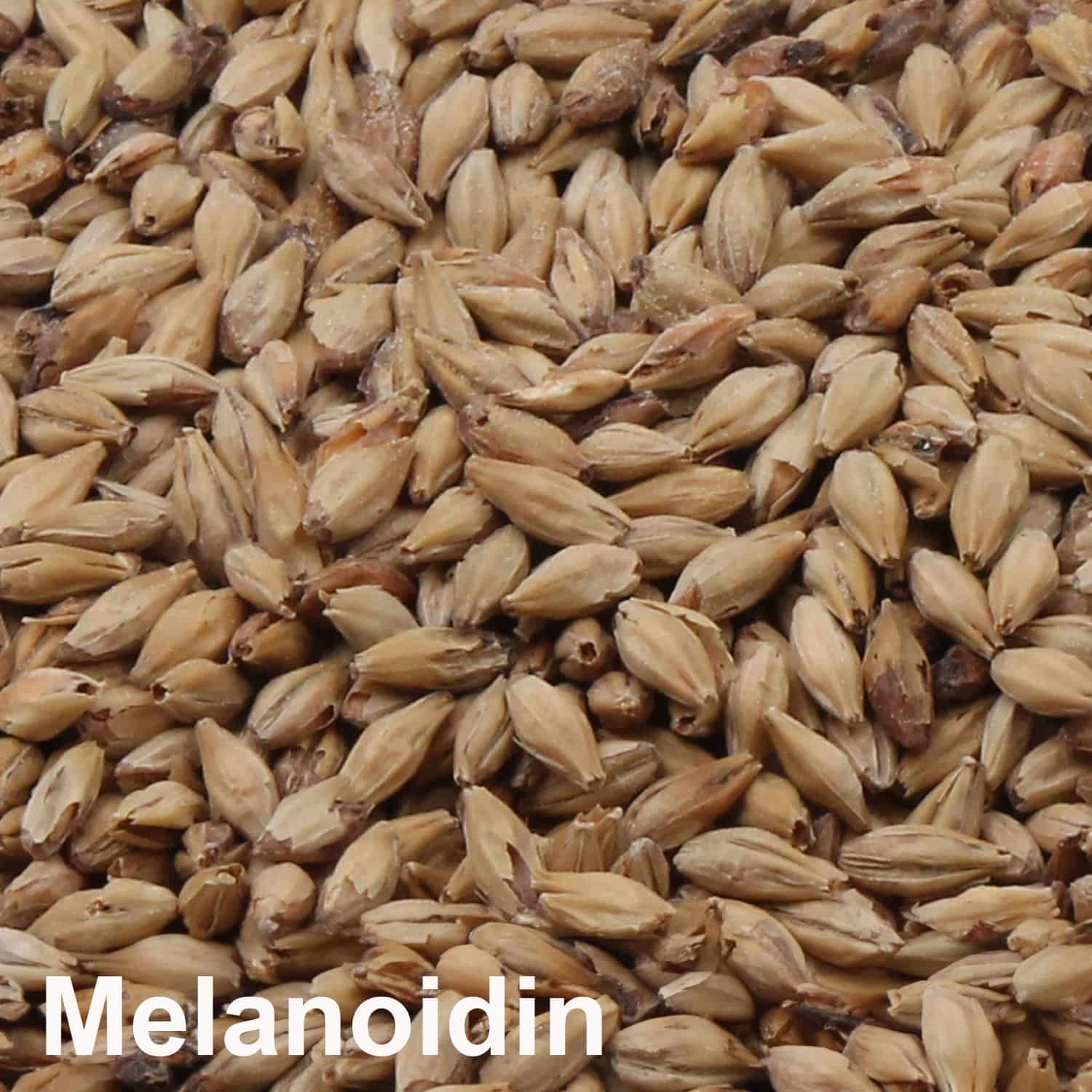 Melanoidin Malz gibt selbst gebrautem Bier eine rötliche Farbe. Die Aromen sind malzig und erinnern an Honig, Biskuit und Trockenobst. Das Melanoidinmalz ist geeignet für alle kräftigen, vollmundigen roten Biere.