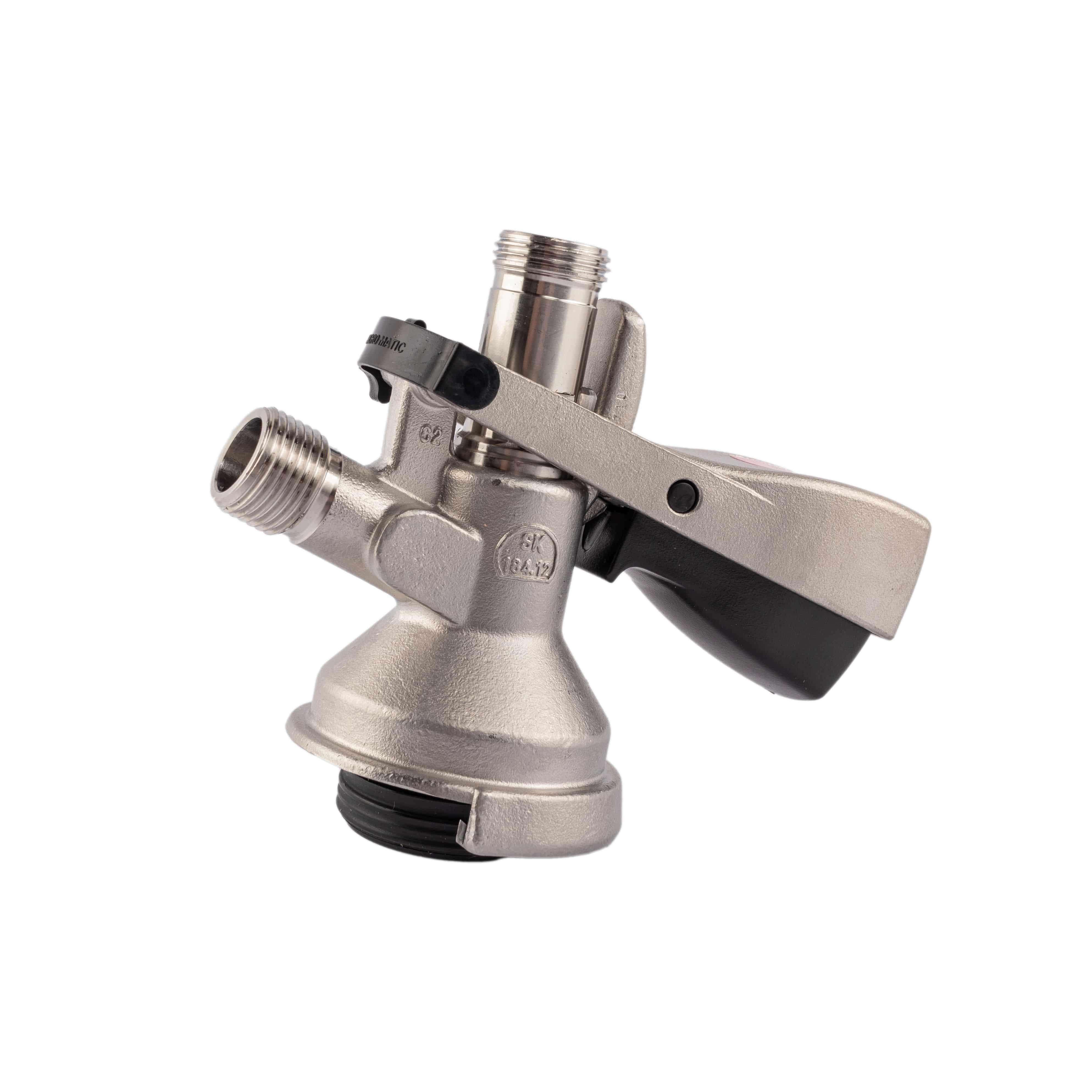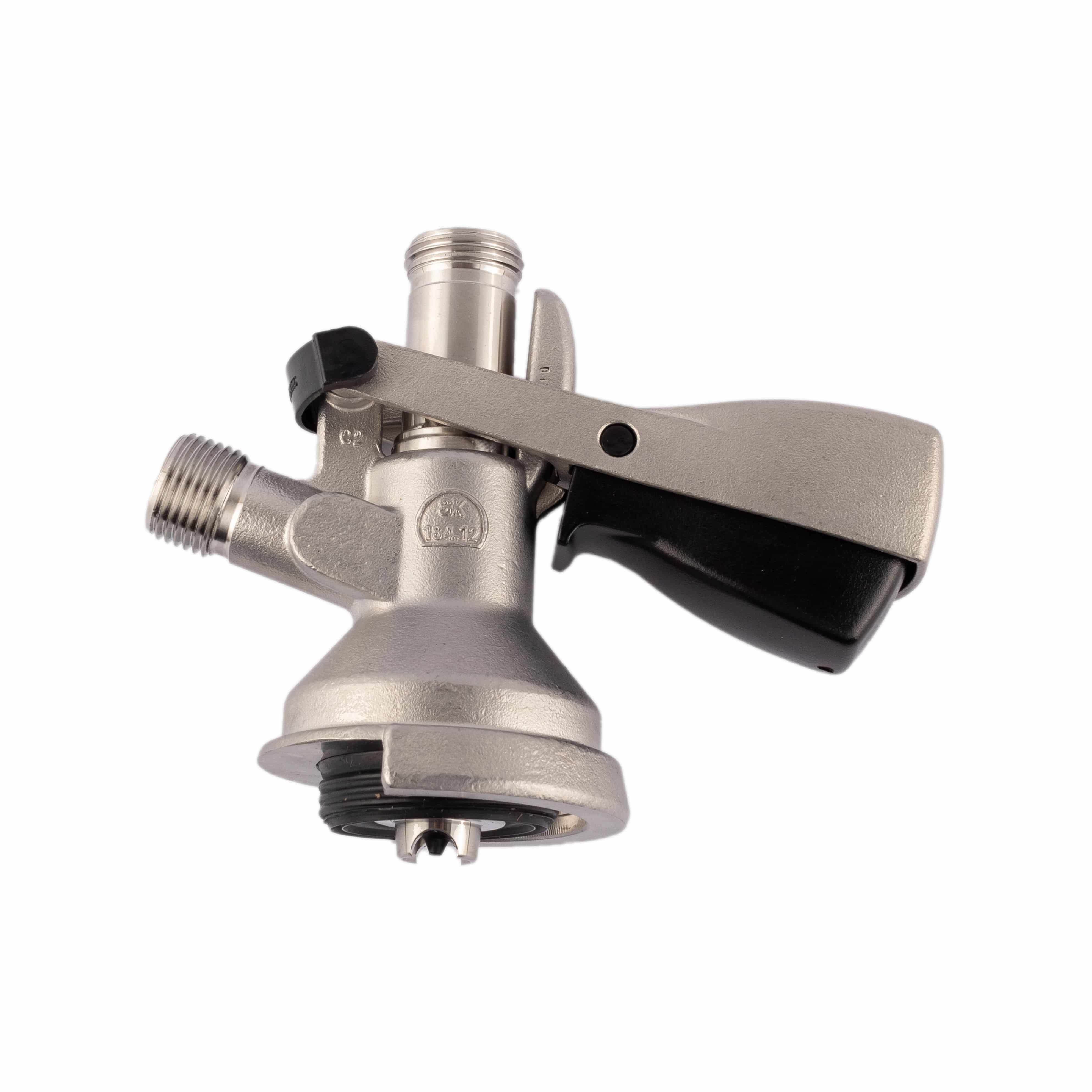 Micro Matic AfG-Standardzapfkopf (Limozapfkopf) aus dem LS-System. Mit F1-Edelstahlgriff und Serienkupplung-Logo.