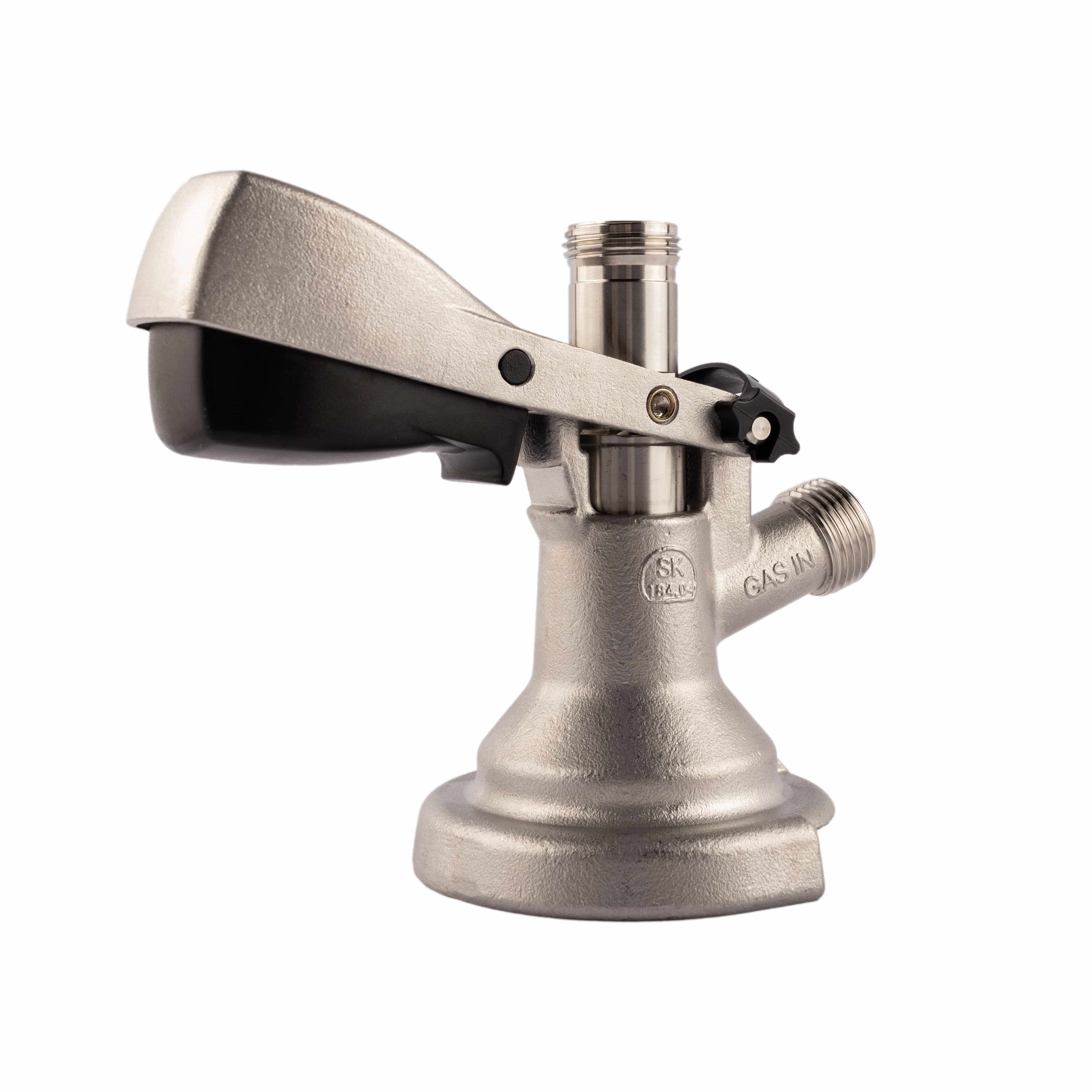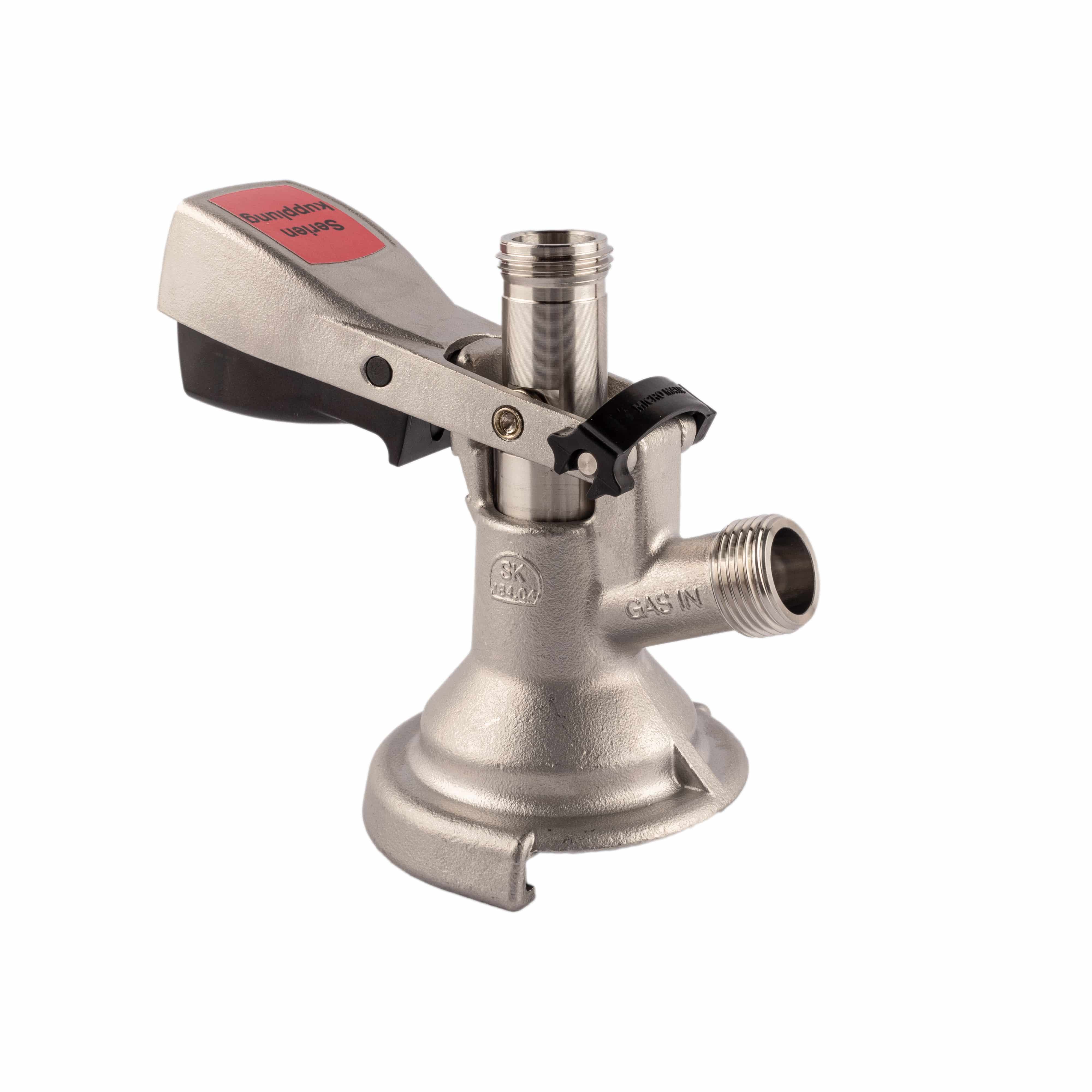 Micro Matic Flachzapfkopf aus dem A-System. Mit F1-Edelstahlgriff und Serienkupplung-Logo.
