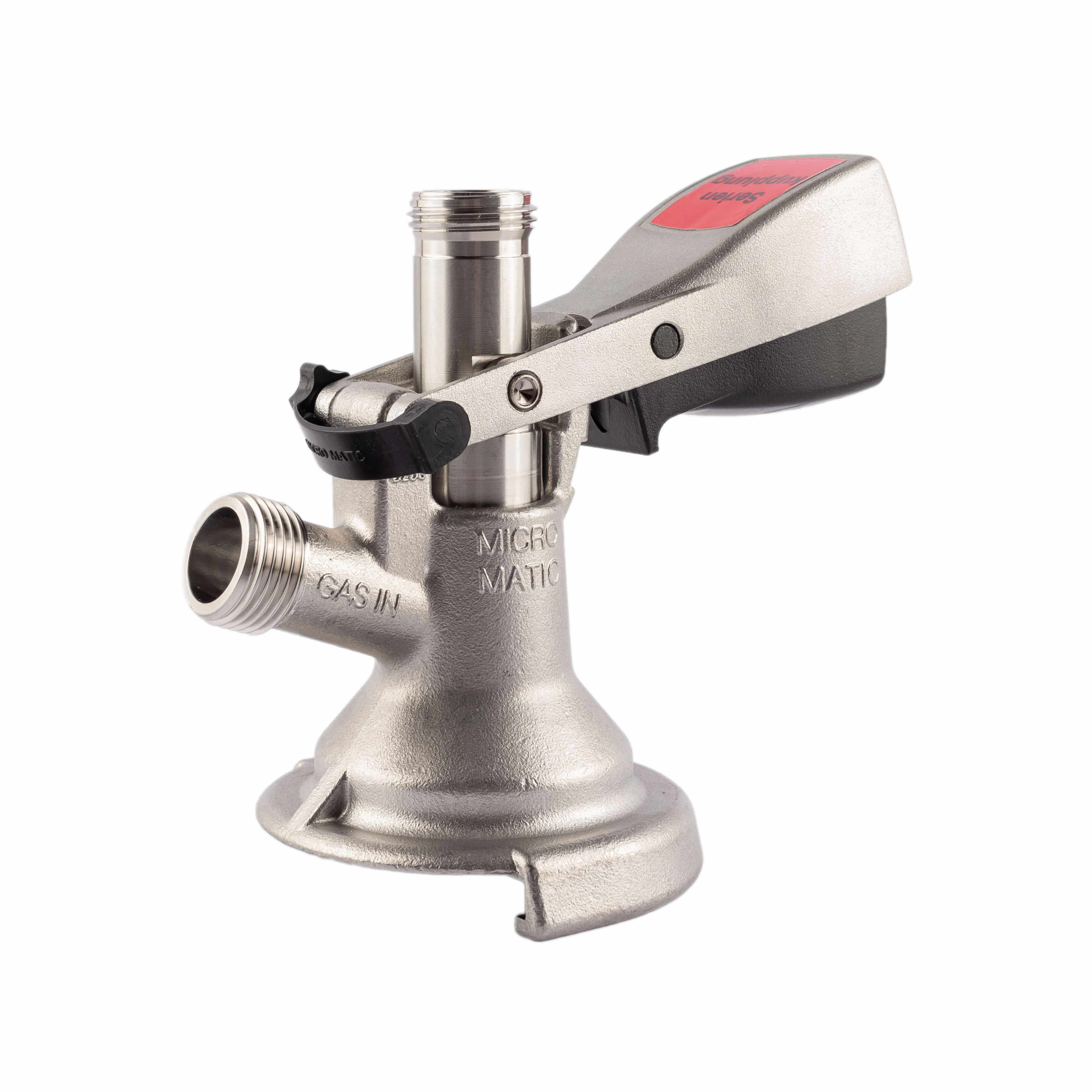 Micro Matic Kombizapfkopf aus dem M-System. Mit F1-Edelstahlgriff und Serienkupplung-Logo.