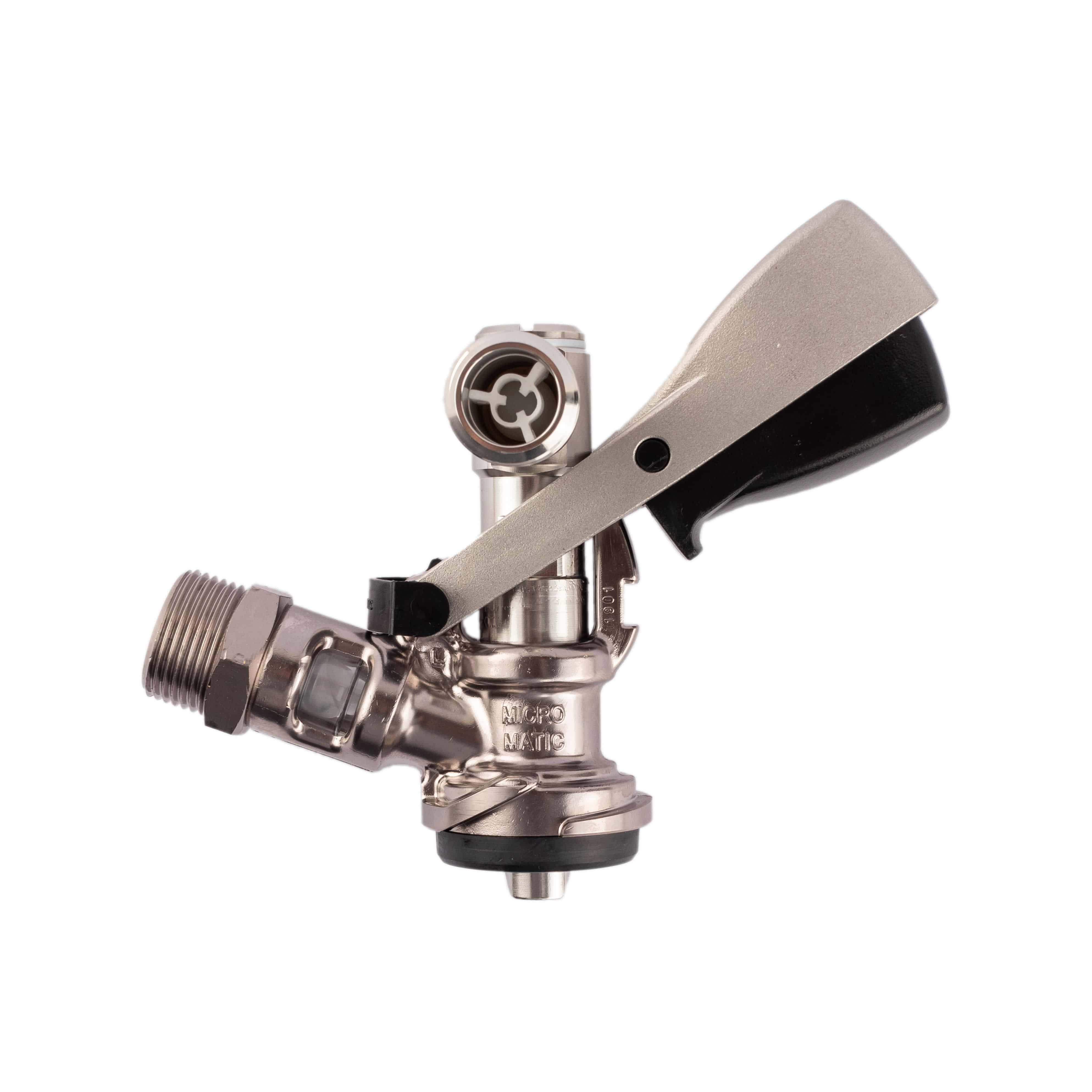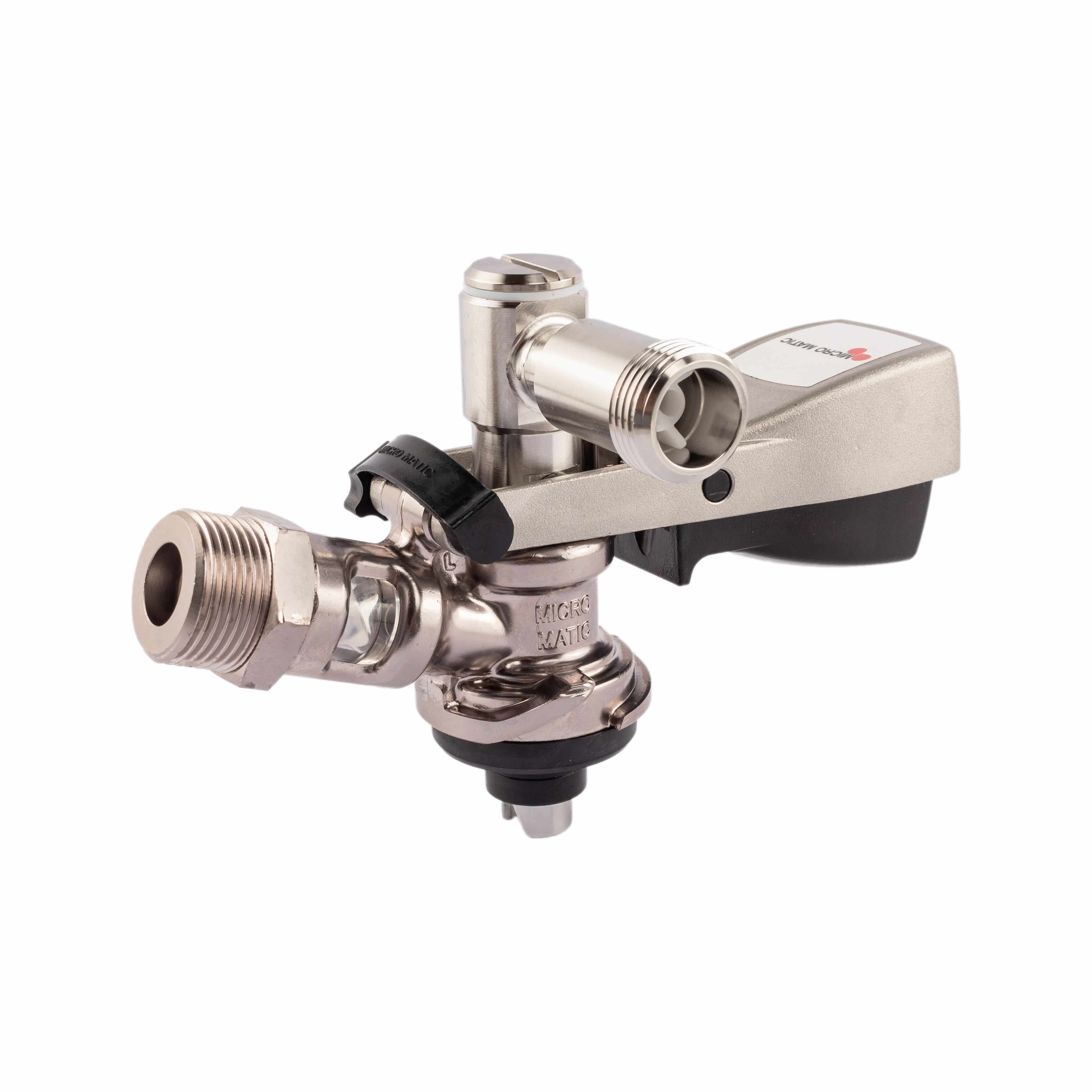 Micro Matic Korbzapfkopf aus dem S-System. Mit F1-Edelstahlgriff und Micro Matic Logo.