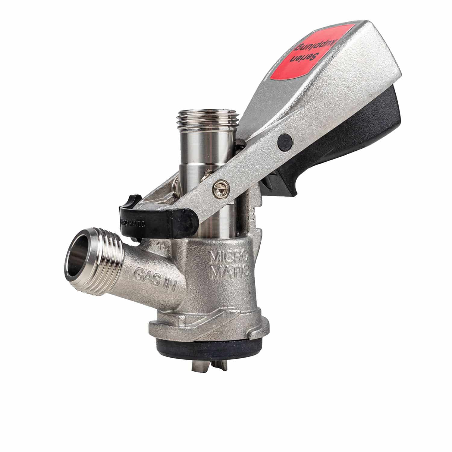 Micro Matic Korbzapfkopf aus dem S-System. Mit F1-Edelstahlgriff und Serienkupplung-Logo.
