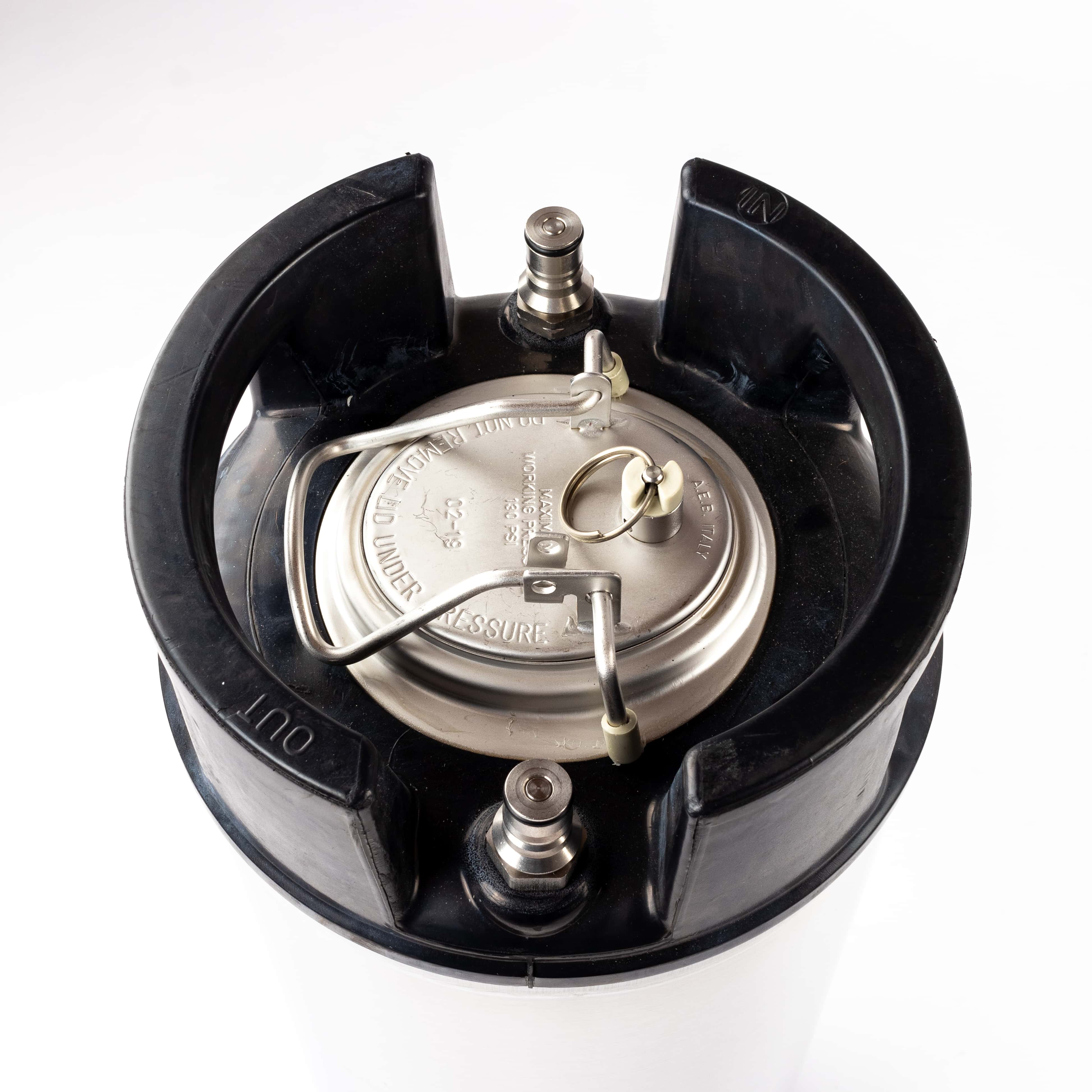 Das NC-Keg hat ein Fassungsvermögen von ca. 19 Litern und eine große ovale Öffnung. Der Deckel ist über seinen Bügelgriff (Spannhebel) leicht zu öffnen und verfügt über ein Sicherheitsventil. Über dieses Entlüftungsventil wird vor dem Öffnen der Druck aus dem Fass abgelassen.