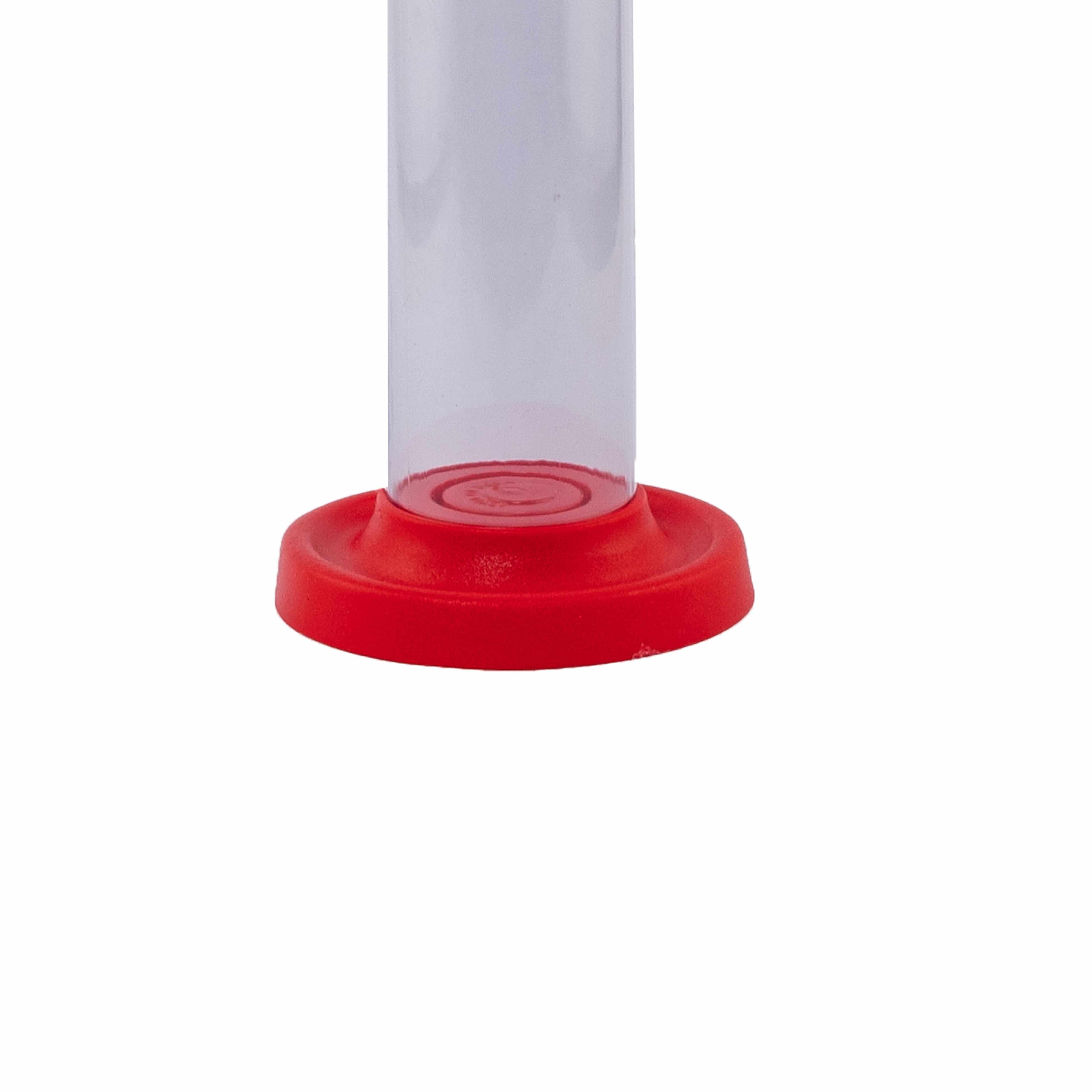 Dieser große Spindelzylinder besteht aus zwei Teilen: einem Standfuß und einem Zylinderrohr, das in die Nut des Standfußes eingesteckt wird. Somit können die Einzelteile einfach – zum Beispiel zur Reinigung – auseinander genommen werden.
