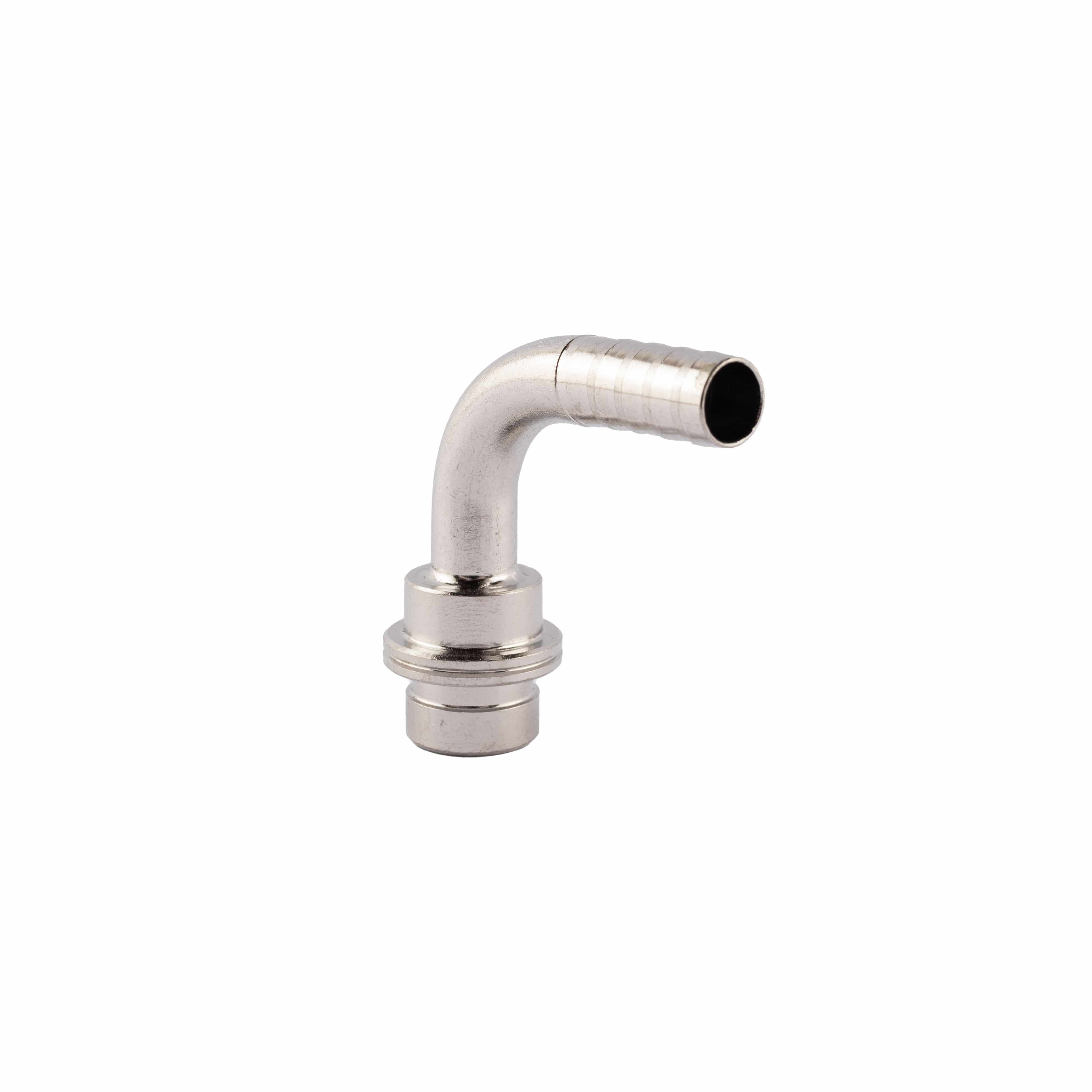 Micro Matic Tülle aus Edelstahl, 90° gebogen, mit Bund und Ansatz, für Getränke- und Gasanschluss.