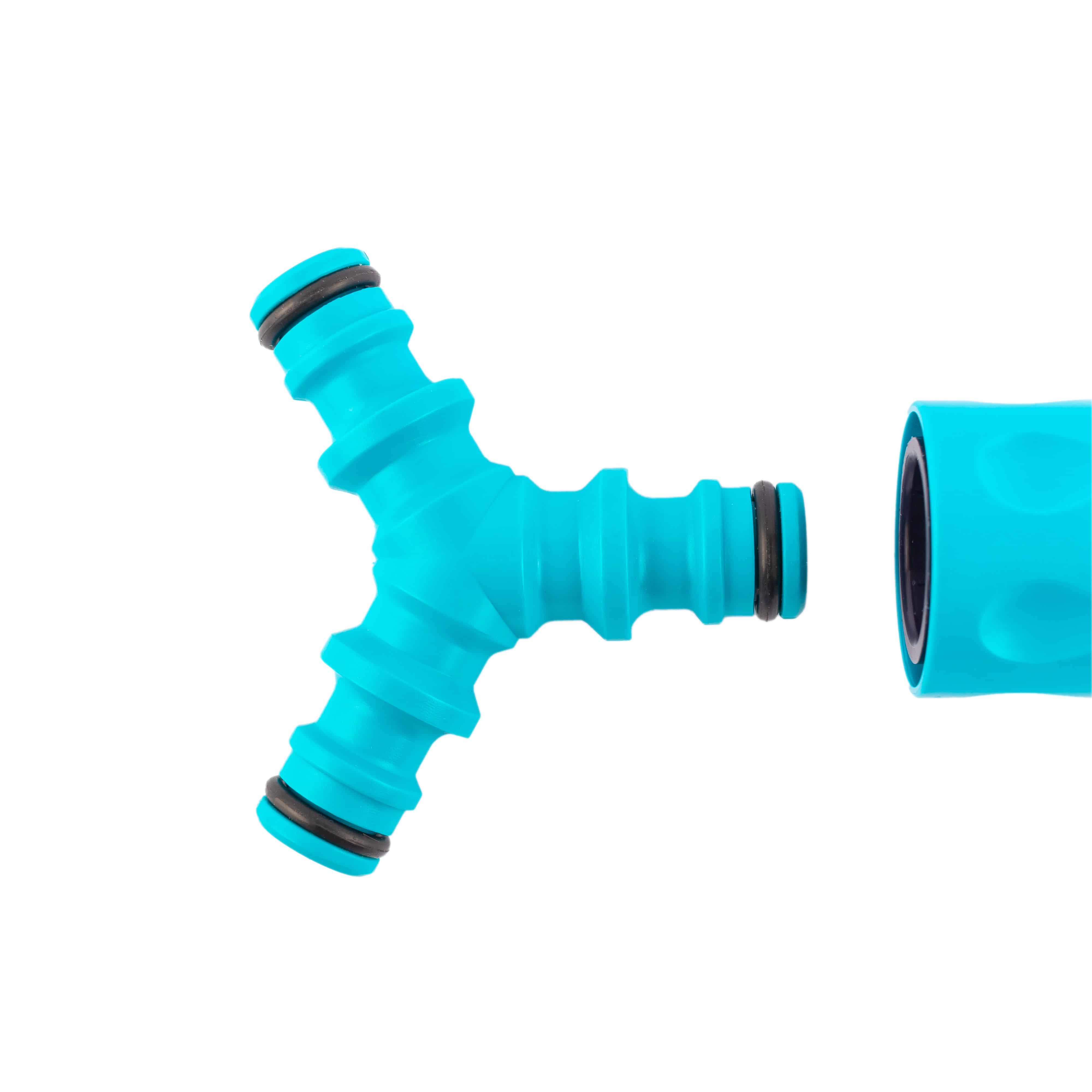 Y-Schlauchverbinder aus Kunststoff mit dreiseitiger Aufsteckkupplung für Wasserschlauch-Gartenstecksysteme.