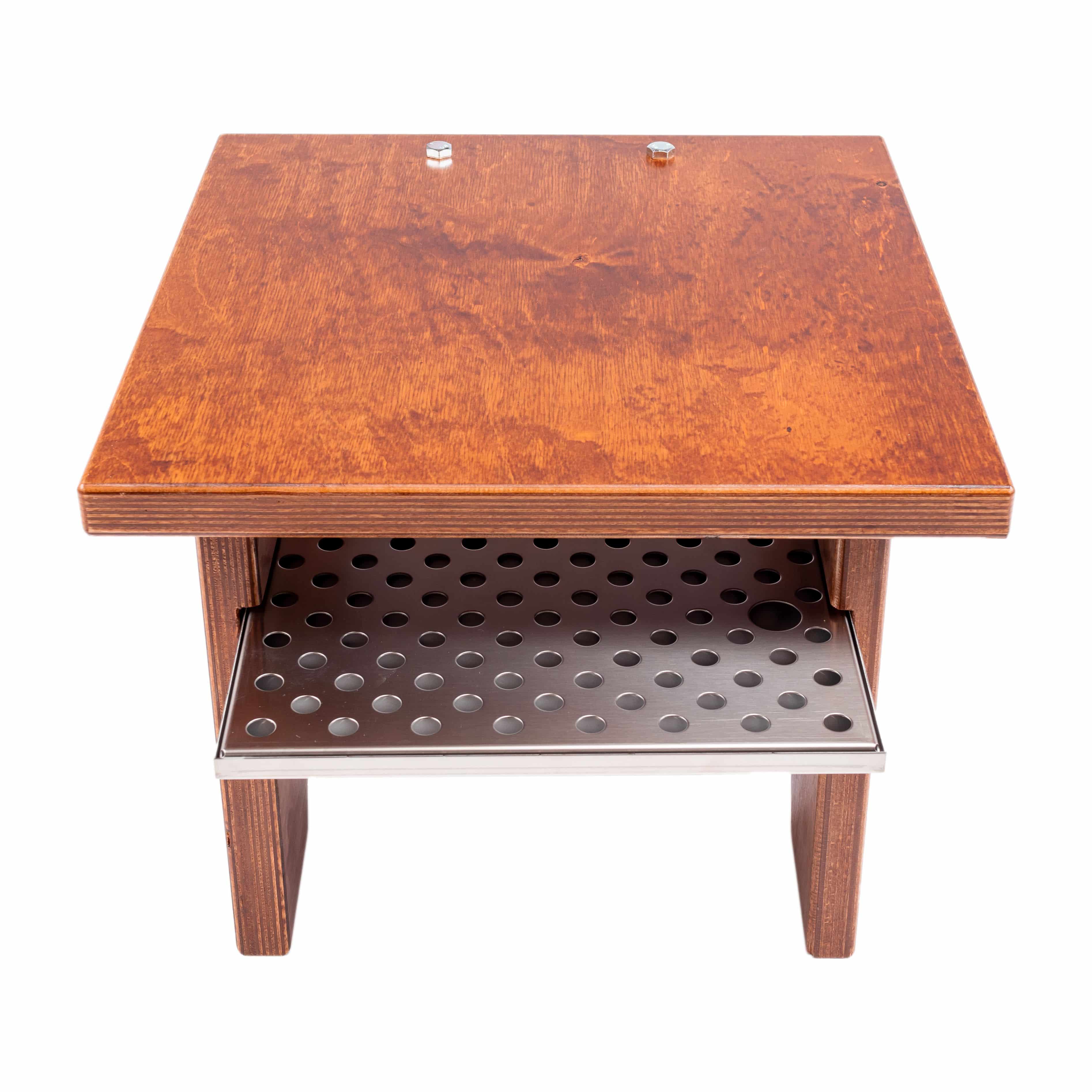 Fassbier-Bock aus Holz, dunkel gebeizt, mit Einschub zur Aufbewahrung einer Tropfschale.