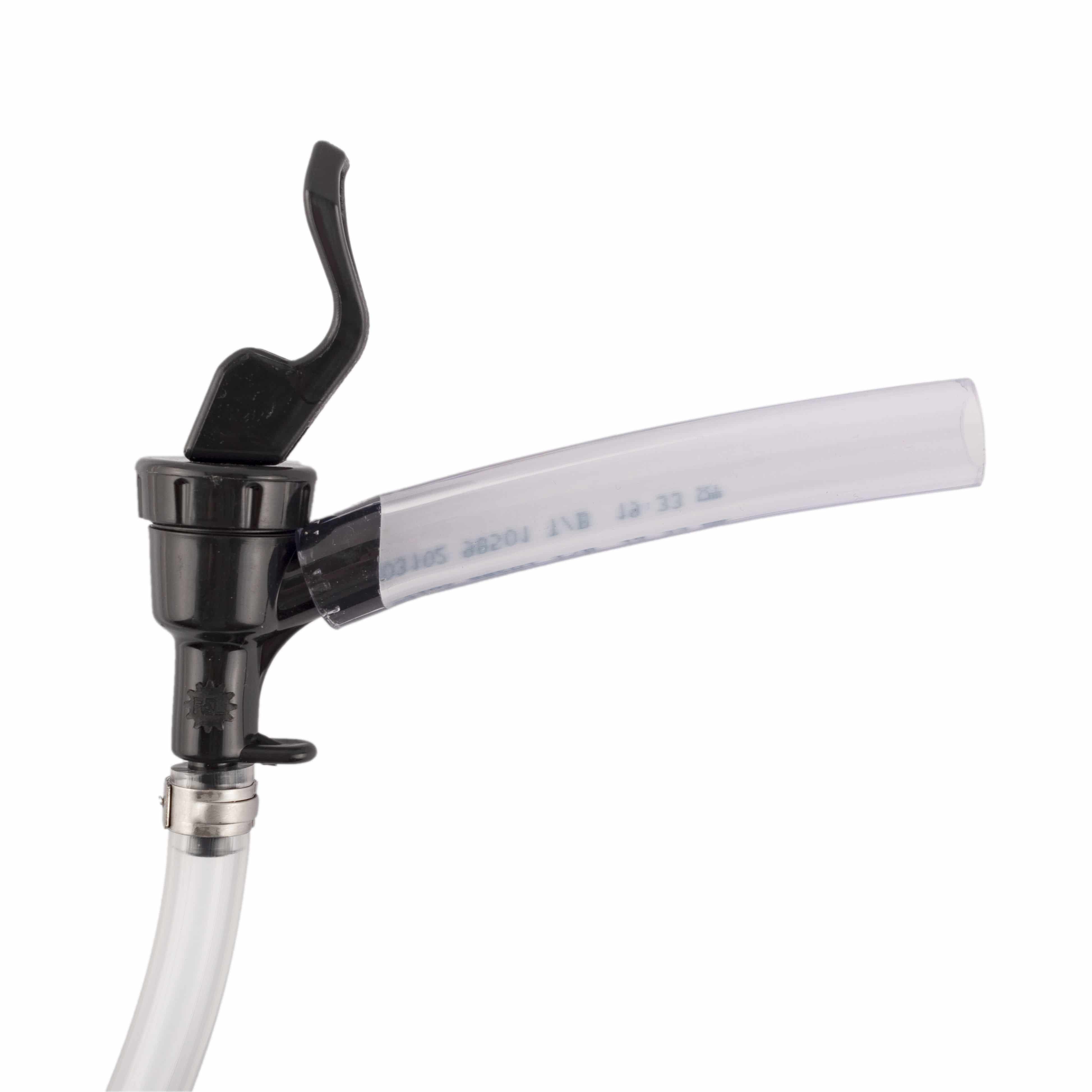 Dieser Mini Zapfhahn aus Kunststoff wird oft auch als Picknick-Hahn bezeichnet. Du bestellst ihn hier anschlussbereit fürs Anstecken auf das Getränkeventil von CC-Kegs. Dazu ist am Bierschlauch bereits die CC Getränkekupplung montiert. Am Auslauf des Zapfhahns befindet sich ein kurzes Schlauchstück, das einen zielgenaueren Ausschank sowie ein praktischeres Handling ermöglicht. Der Zapfhahn wird mechanisch per Fingerdruck geöffnet, du kannst ihn mit nur einer Hand bedienen.
